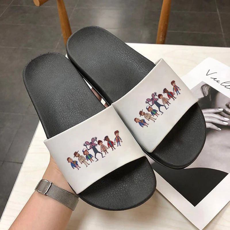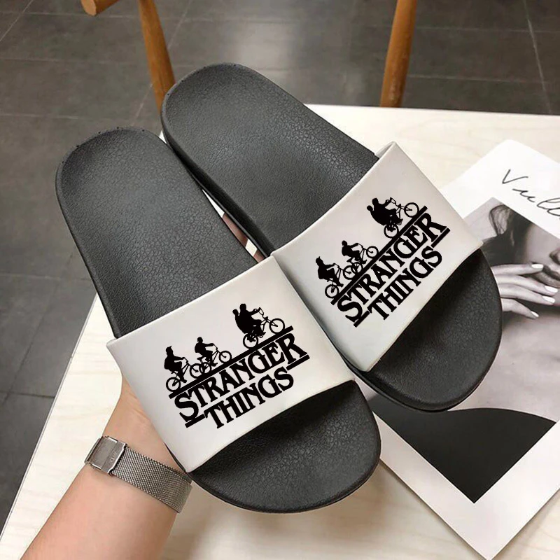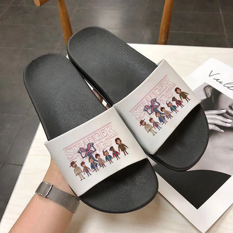 Удобные домашние тапочки для женщин, обувь для дома и ванной комнаты в стиле странные дела, женская обувь на плоской толстой подошве