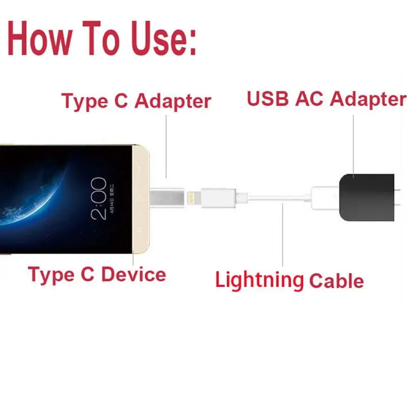 Вы можете использовать кабель USB-lightning, кабель Type-C-lightning для подключения к этому адаптеру.
