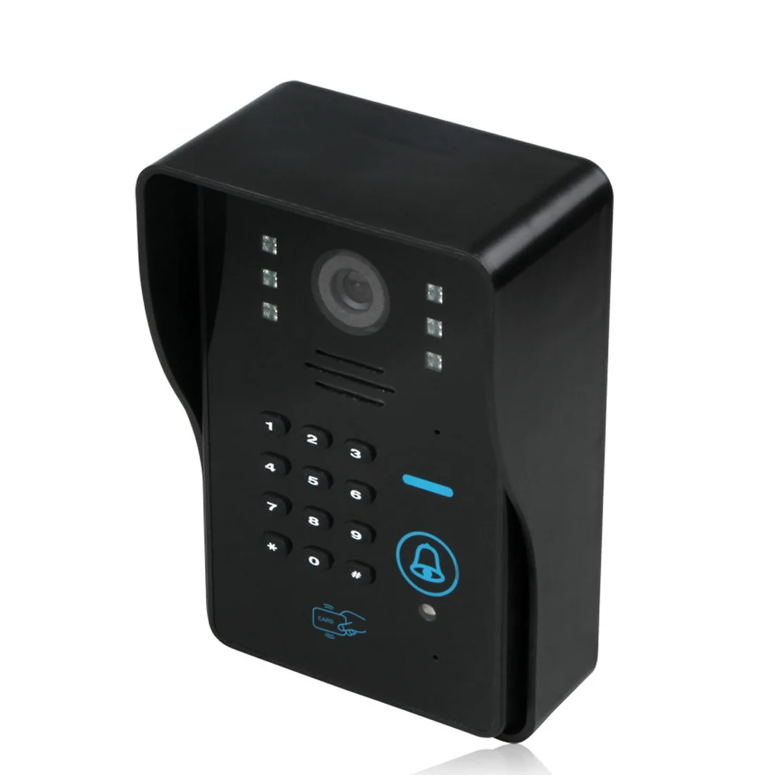 Особенности:1. С помощью сенсорной кнопки, которая является щедрой и привлекательной, также может сэкономить электричество.2. Конструкция непромокаемой крышки, водонепроницаемая и влагостойкая, которая может защитить срок службы машины.3. Функция разблокировки (разблокировка интерфейса подходит для постоянного тока 12 В нормально открытый/нормально заблокированный замок).4. Дверной звонок оснащен интерфейсом кнопки выхода, это практично.5. Наружная машина может поддерживать до 5 мобильный телефон пользователей.6. Дверной звонок может общаться с мобильным телефоном, который имеет четкое и громкое качество звука.7. Функция записи, вы можете использовать мобильный телефон, чтобы проверить его в любое время.8. Добавляет множество способов разблокировки, таких как карты, пароль и Распознавание лиц.9. P2P сервера нажимают звонки посетителей, фотографируют посетителей и обнаруживают записи тревоги.Требования к оборудованию:1. Смартфон или планшет Android 4,1 или выше и операционная система IOS.2. Домашняя сеть выше 4 м.3. Мобильная Сеть 3G, 4G.Источник питания:Нет аккумулятора и необходимо подключить к источнику питания.(Вилка EU, вилка US.UK)