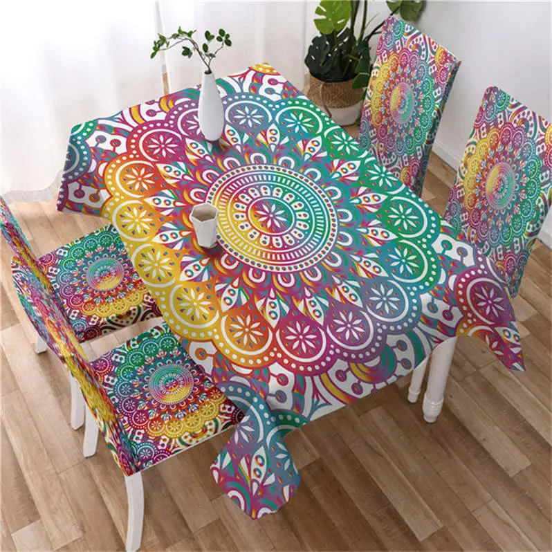 Водонепроницаемая прямоугольная скатерть в богемном стиле с цветочным принтом мандалы, скатерть для журнального столика, скатерть для праздничного украшения стола