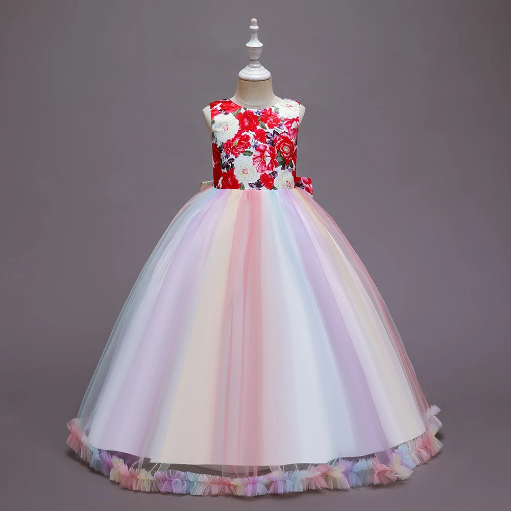 Европейский Стиль розового З рисунком заводского производства, свадебное платье для девочек милые детские вечерние покупателей в возрасте 10 лет красное платье для дня рождения