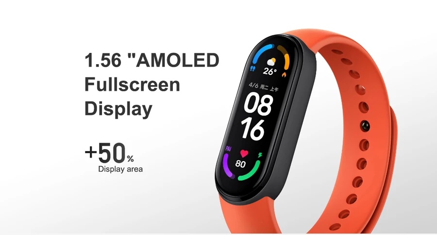 Смарт-браслет Xiaomi Mi Band 6, фитнес трекер с AMOLED экраном 5 цветов, с функцией измерения уровня кислорода в крови, с поддержкой Bluetooth, водонепроницаемый