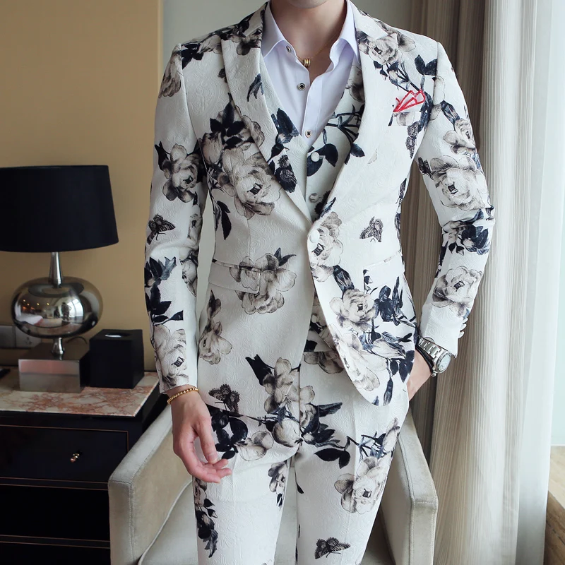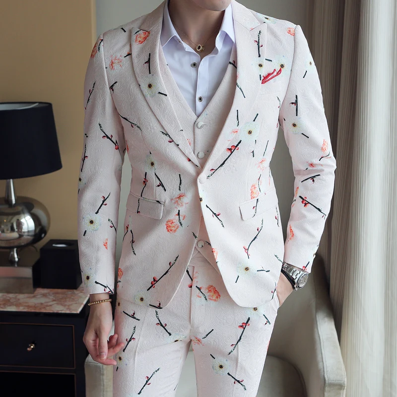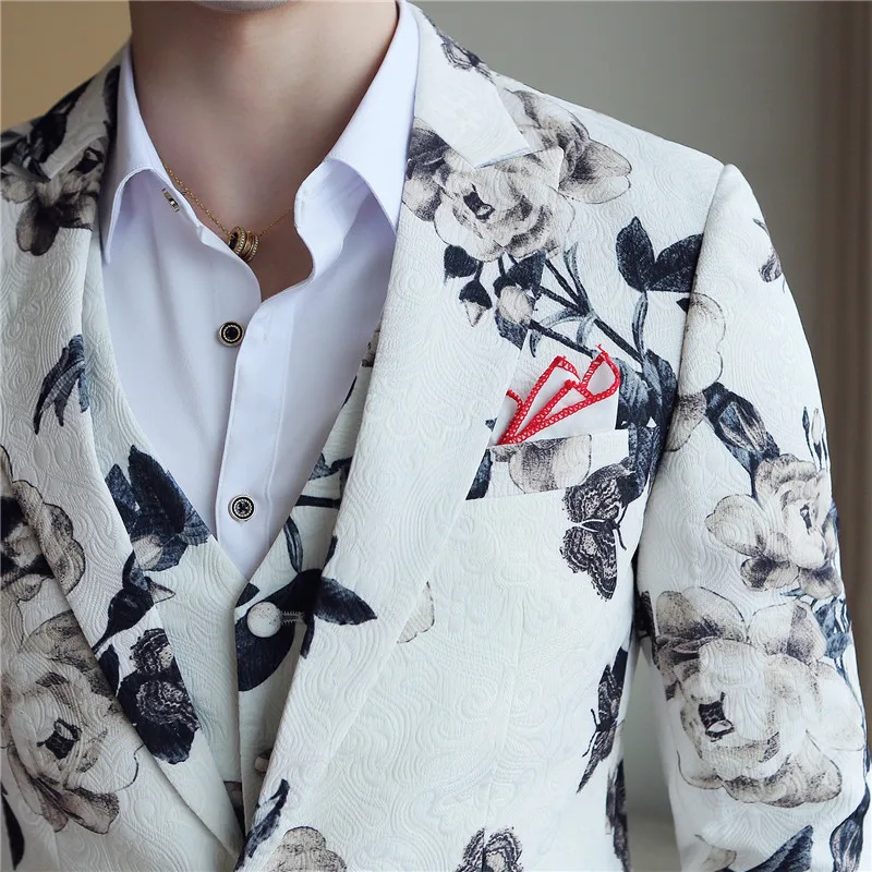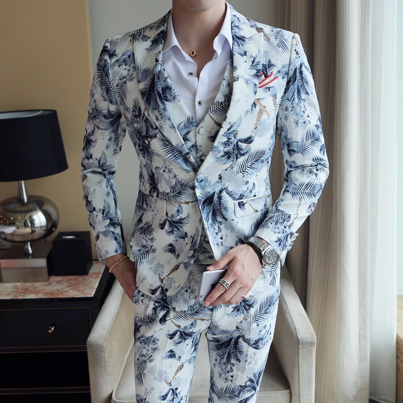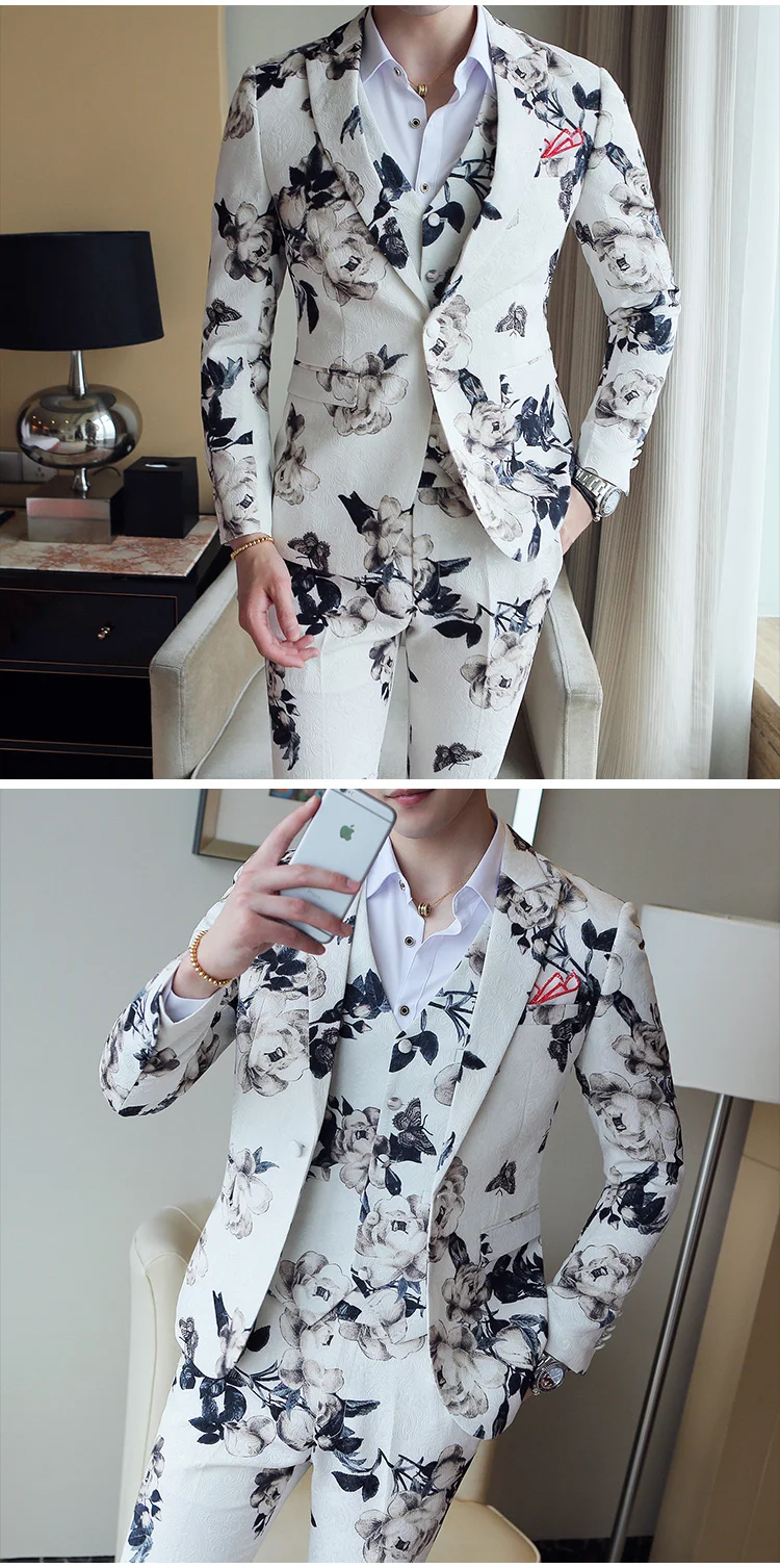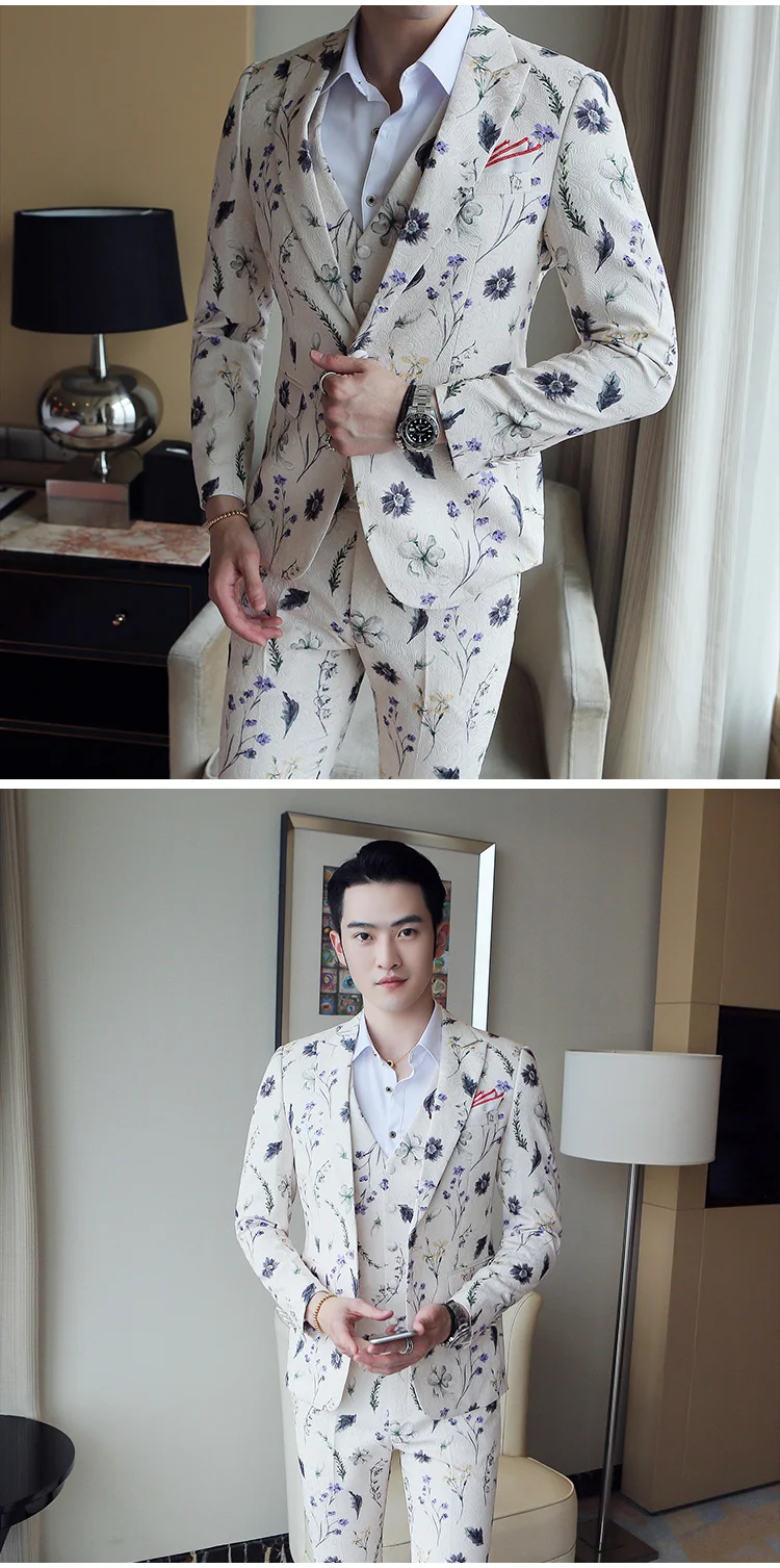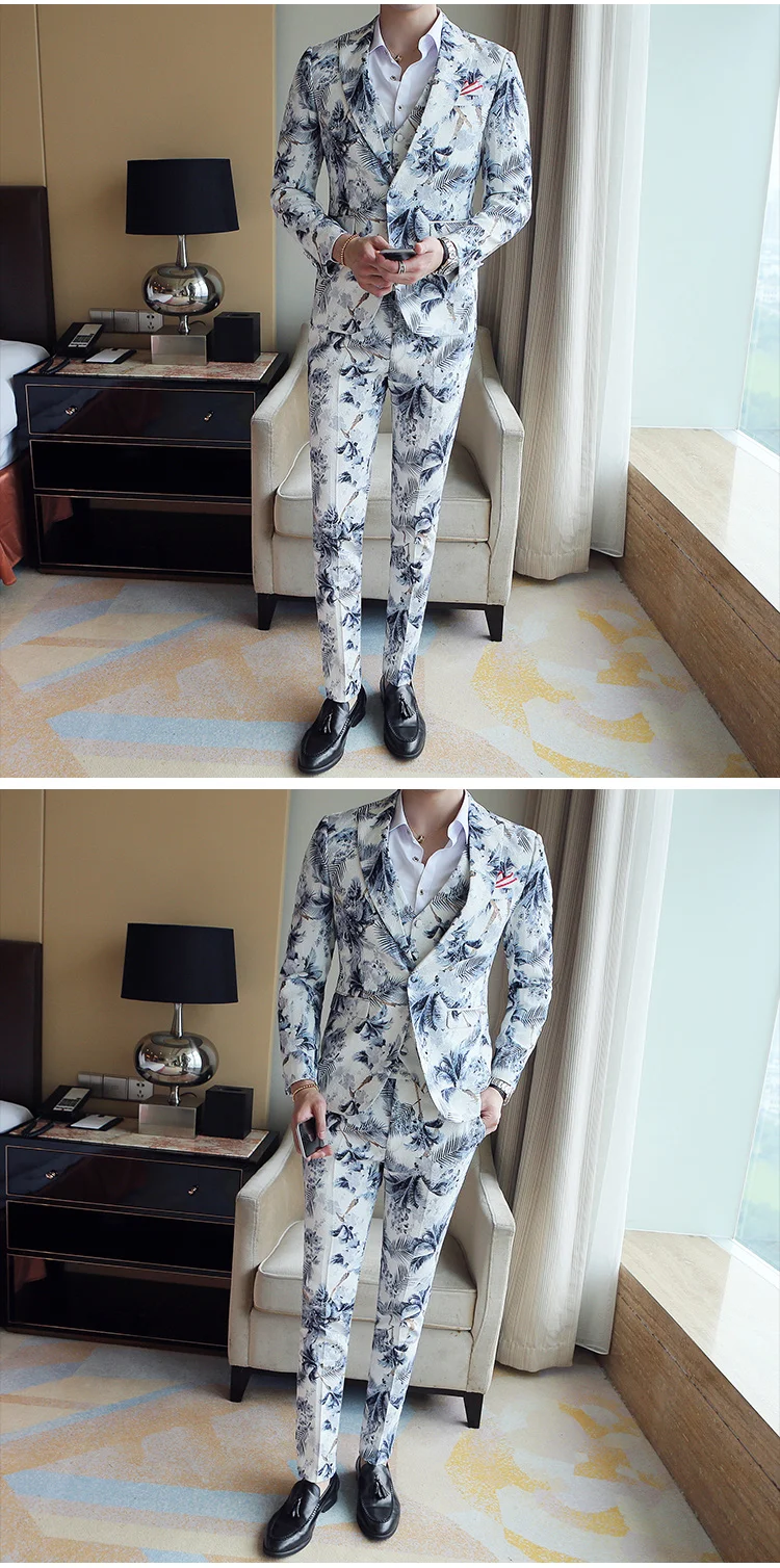 Мужской костюм из 3-х предметов, куртка + жилет + брюки, мужской свадебный костюм с принтом для жениха, костюм для банкета, сценического шоу, мужской повседневный костюм XXL