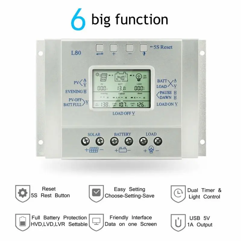 Это совместимый MPPT Контроллер заряда PWM умный/эффективный/энергосберегающий, он не только имеет эффективную функцию зарядки MPPT контроллера для автоматического отслеживания максимальной точки питания, 10%-30% выше, чем обычный регулятор коэффициента зарядки, также имеет экономию энергии в режиме ожидания, более 30% энергии, чем обычный контроллер, потребление энергии в режиме ожидания всего 10 мА-15 мА.