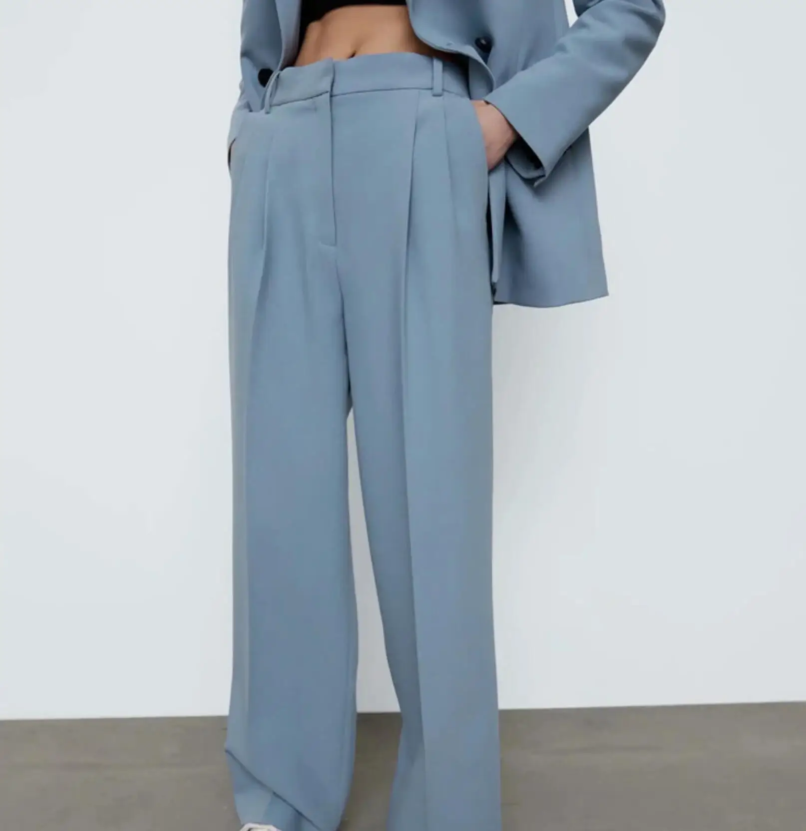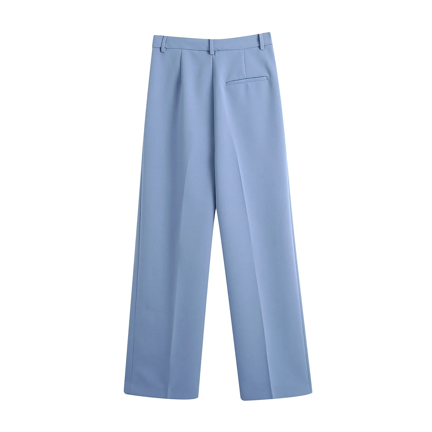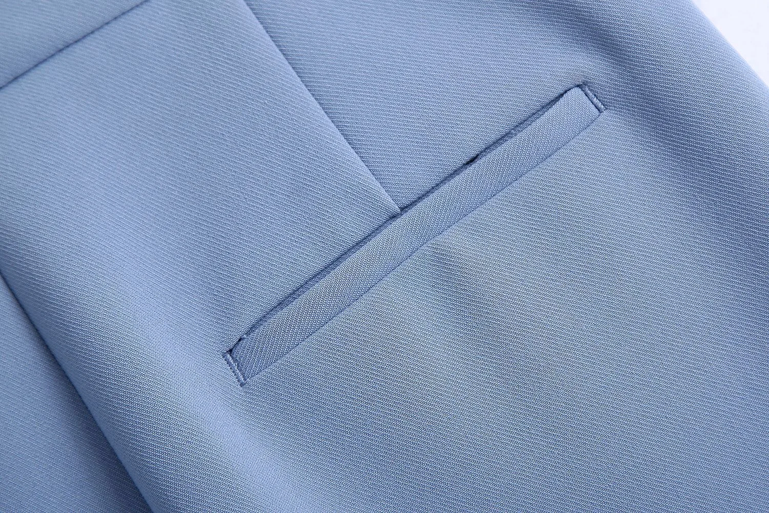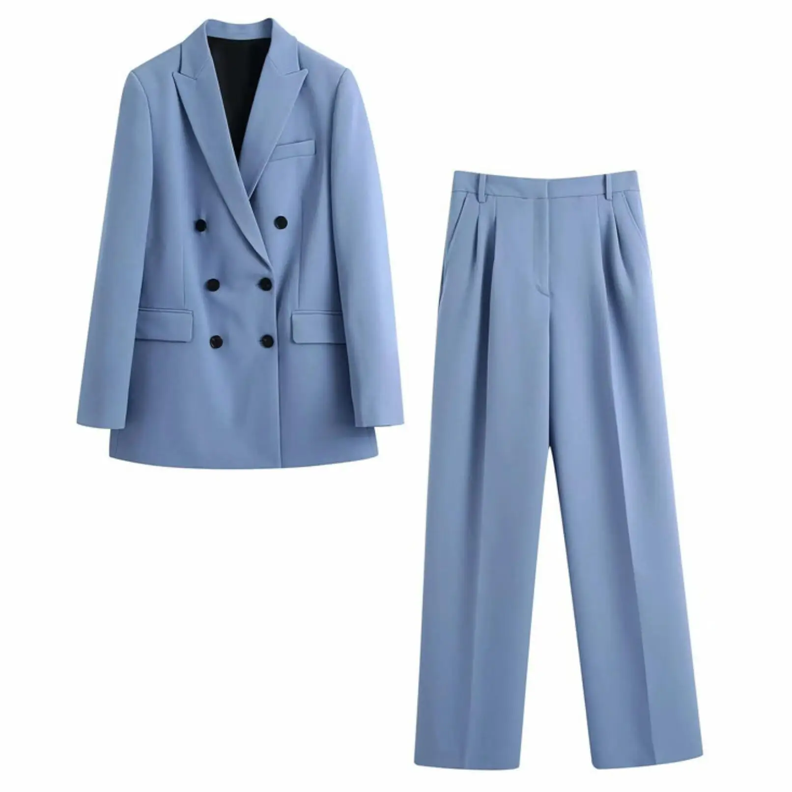 Женский винтажный костюм из 2 предметов, синий двубортный Блейзер на пуговицах и прямые брюки с высокой талией и длинным рукавом, пальто, осень 2021