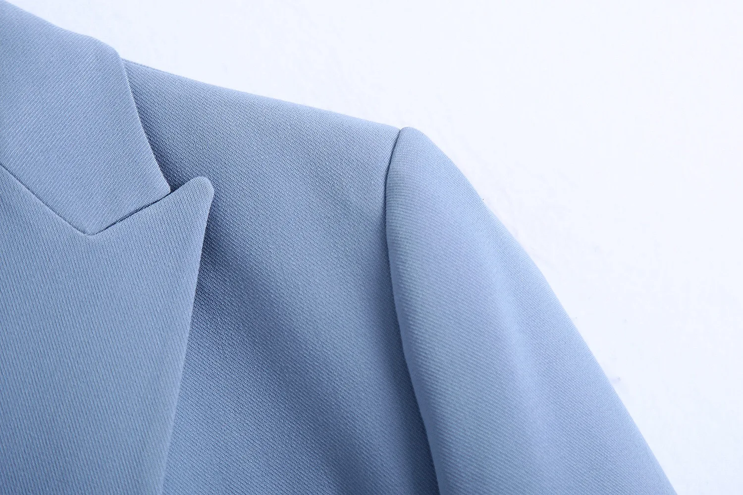 Женский костюм из двух предметов, голубой двубортный пиджак и повсе...