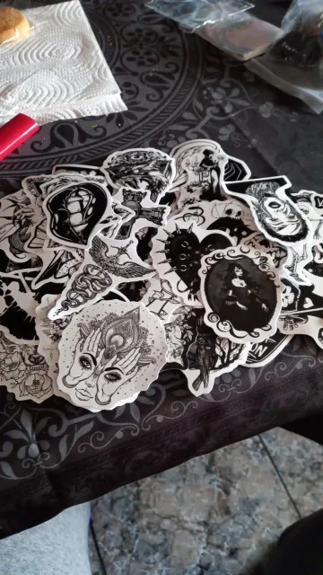 Хорошее разнообразие черной и белой темы готического граффити дьявола, как было описано. Размер такой, как я ожидала, проверю водонепроницаемые возможности как можно скорее