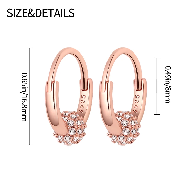 Серьги из настоящего серебра 925 пробы с круглыми Розовыми Фианитам...