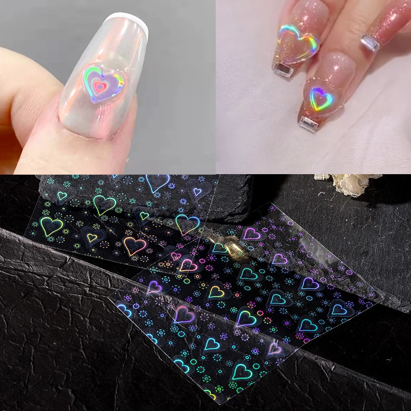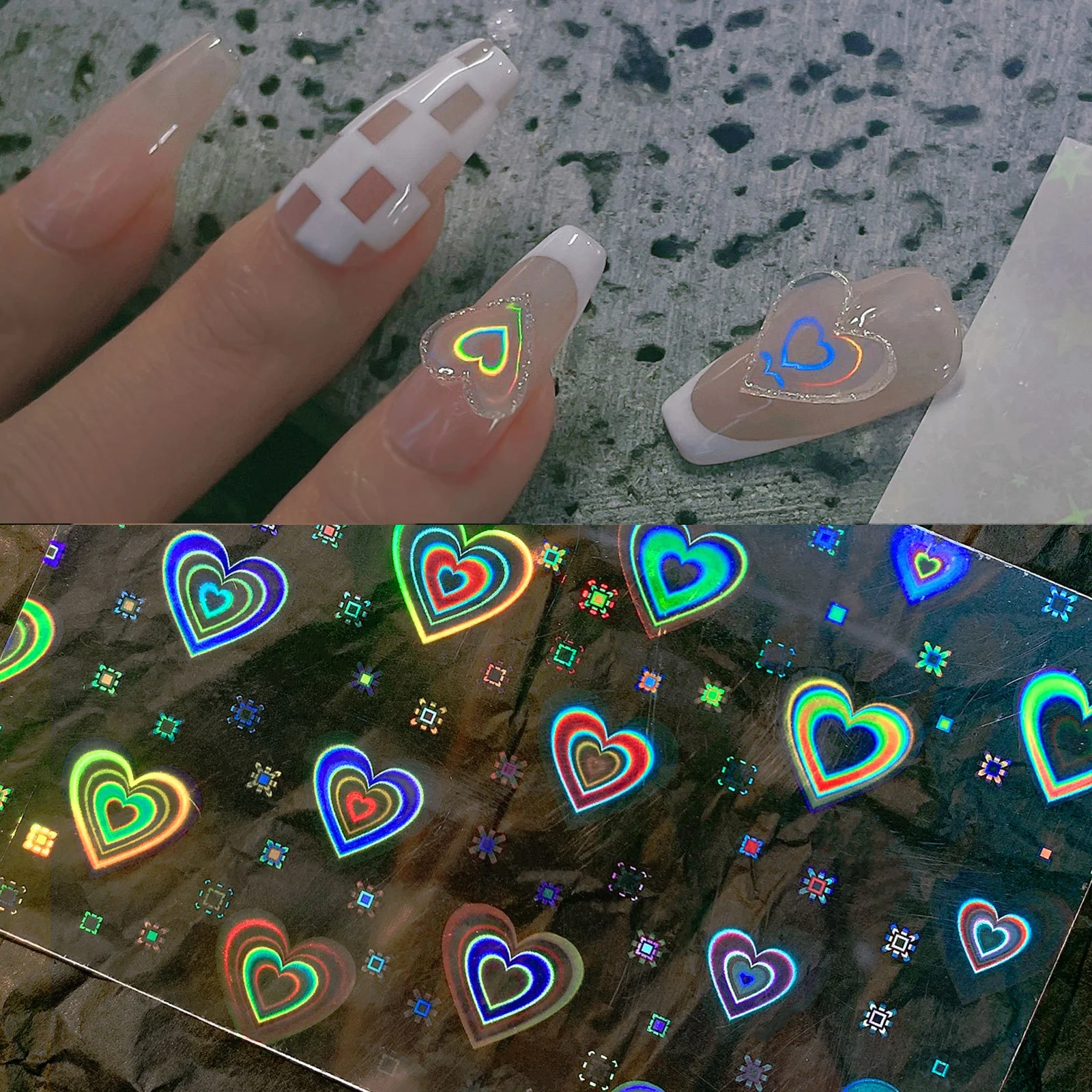 Самоклеящиеся наклейки для ногтей с сердцем, лазерные бронзирующие ...