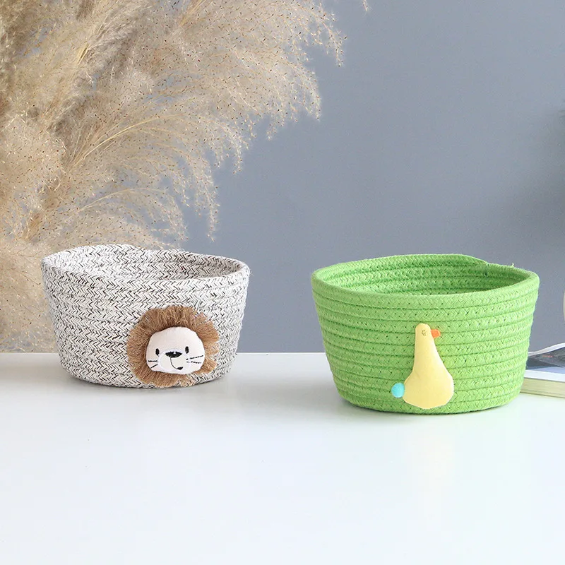 Хлопковая веревка, корзины для хранения с животными, Детская модель, ручная работа, ткачество, Настольная коробка-органайзер для всякой всячины
