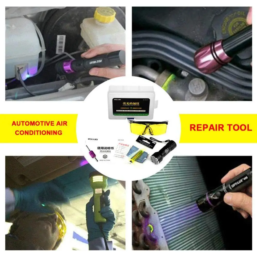 Автомобильный светодиодный фонарик для кондиционирования воздуха, защитные очки, УФ-краска, детектор утечки, набор инструментов