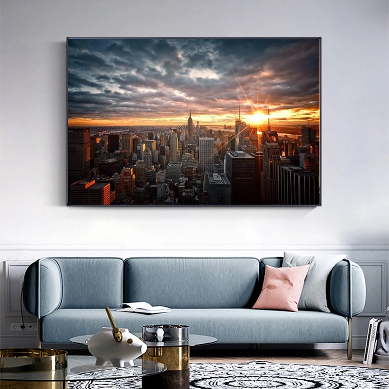 Холст с изображением заката, Нью-Йорка, настенные картины, художест...