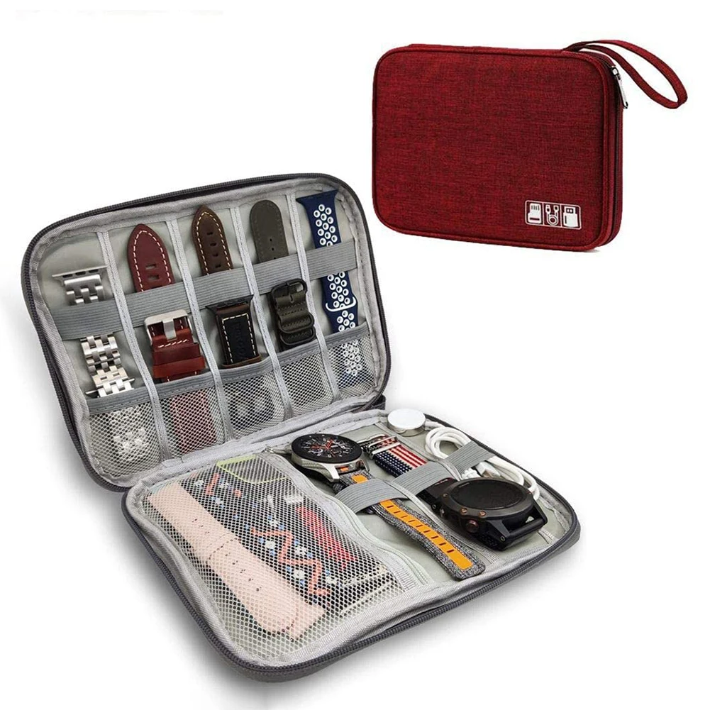 Портативный ремешок для часов сумка для хранения данных кабель для мобильного питания ремешок для часов Дорожный Чехол Пылезащитный Органайзер держательОсобенности:1. Легкая текстура, тонкая работа, красивая и прочная.2. Высококачественная ткань, устойчивость к морщинкам, брызг, износостойкость, устойчивость к царапинам и длительный срок службы.3. Он может прекрасно хранить ремешок для часов и легко носить с собой.Спецификация: спецификация (А):Материал: полиэстерЦвет: красный, фиолетовый, серый, темно-синий, серый (опционально)