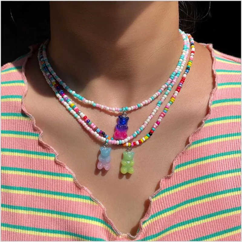 Женское ожерелье с подвеской в виде медведя из эпоксидной смолы