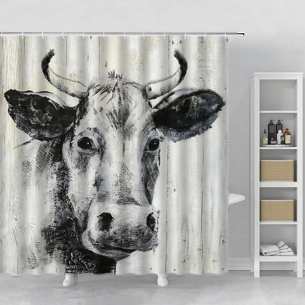 Highland коровья душевая занавеска забавная дверь быка сарая деревянная ферма деревянные западные доски дикая природа животное портрет занавеска для ванной комнаты s