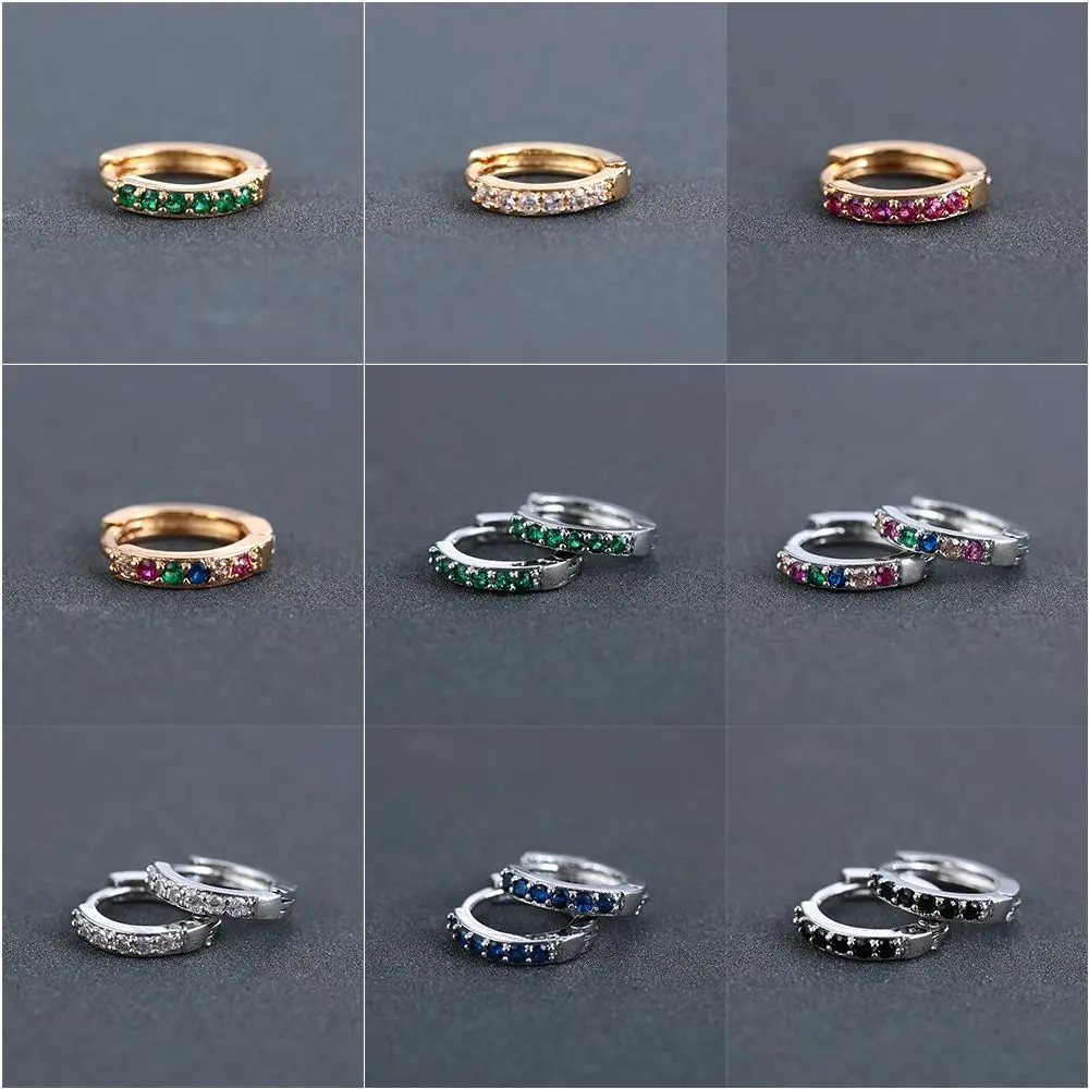 Серьги-гвоздики с фианитом женские, маленькие разноцветные Круглые ...