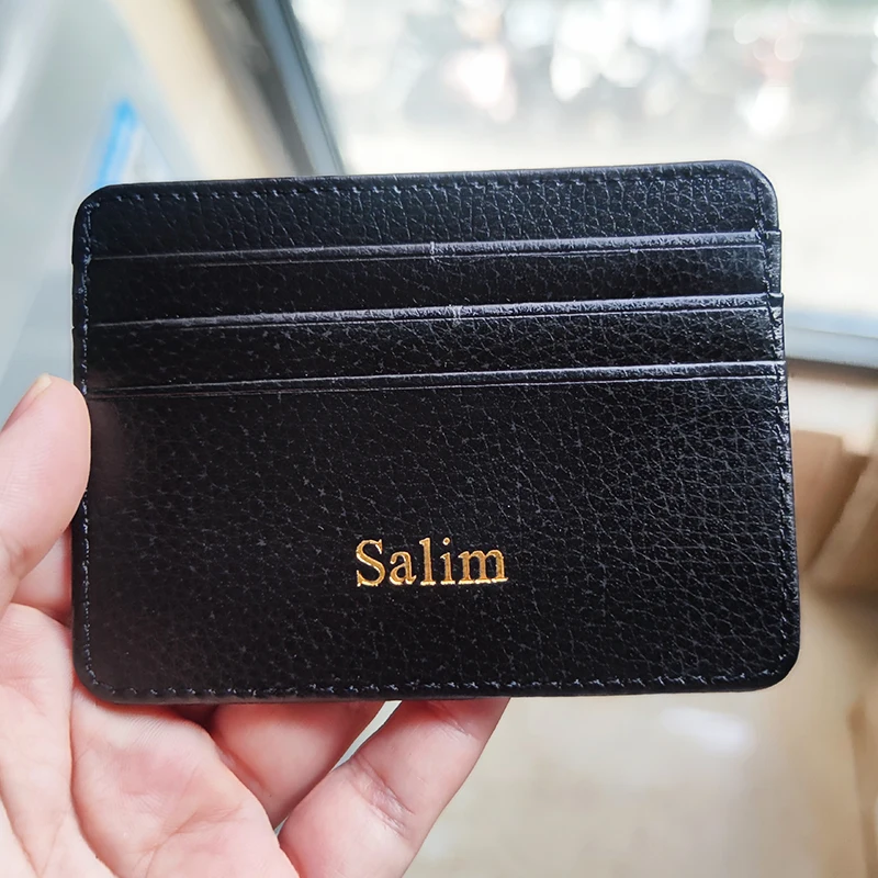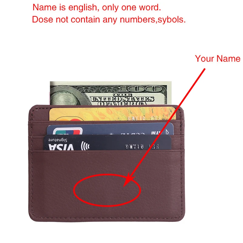 Прочный тонкий держатель для карт для мужчин и женщин с бесплатной гравировкой, дорожный кошелек из искусственной кожи для банковских карт, удостоверения личности, мини-чехол с зажимом для денег