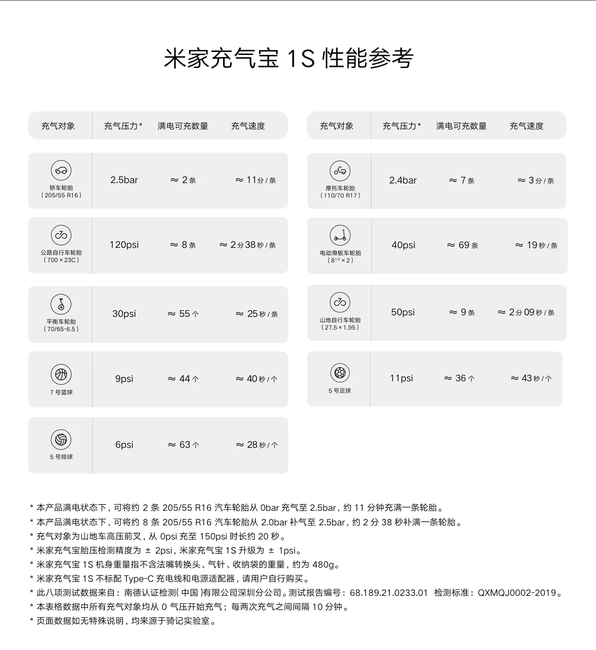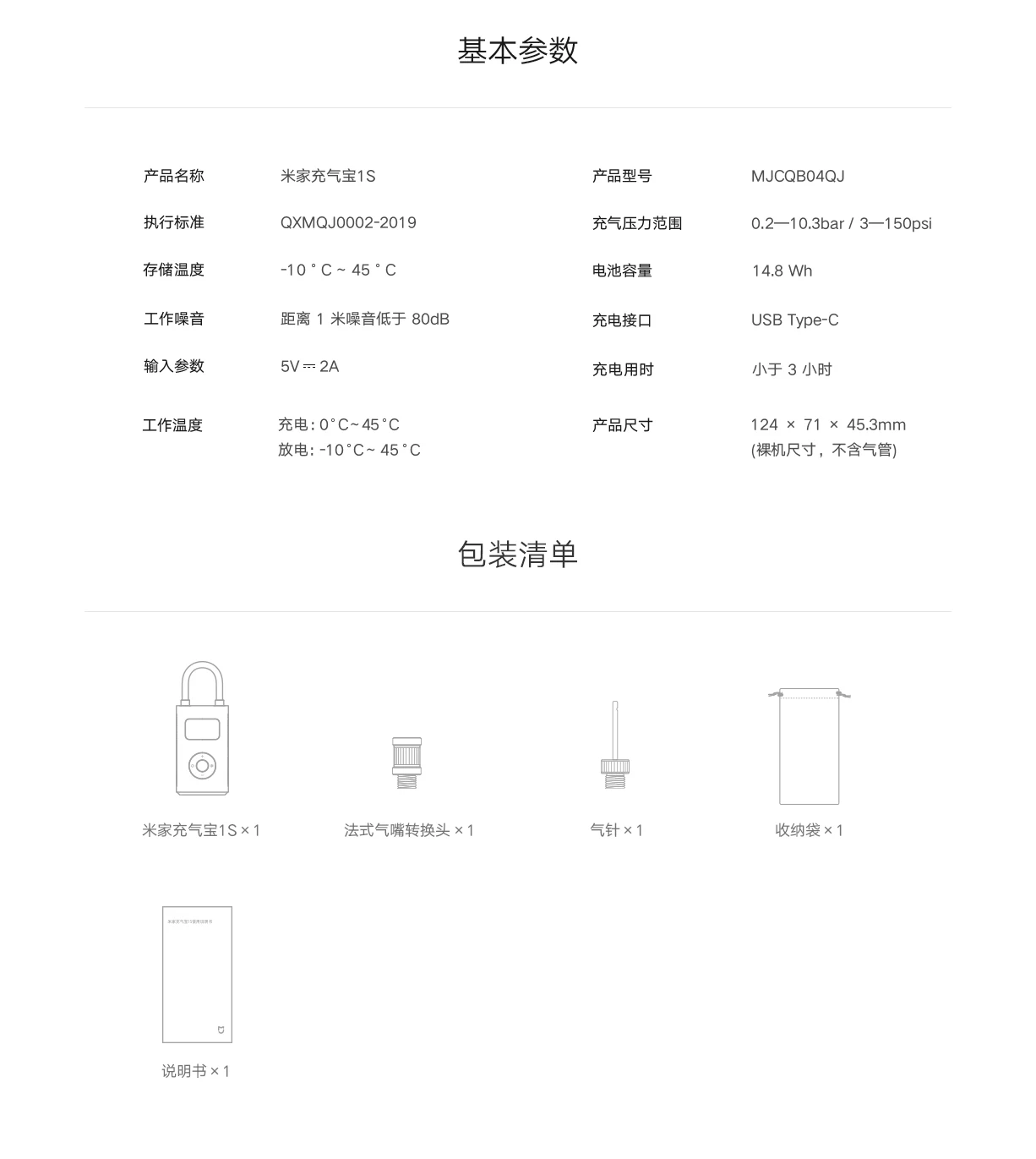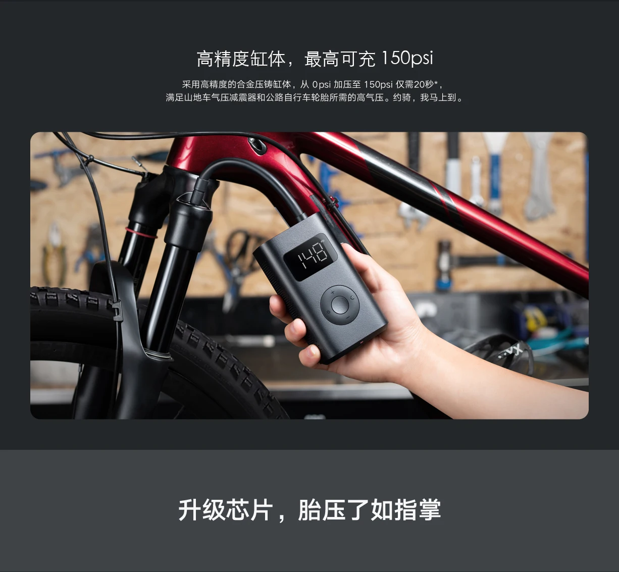 Портативный беспроводной электрический воздушный компрессор Xiaomi Mijia 1S, надувной насос со светодиодной лампой для мотоцикла, автомобиля