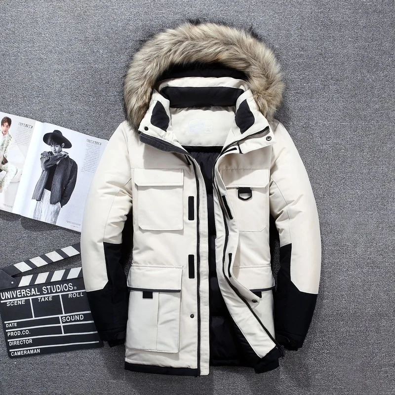 Роскошная Высококачественная 90% пуховая куртка, Мужская зимняя куртка, мужские толстые теплые парки, пуховые куртки на белом утином пуху, повседневные мужские пуховики