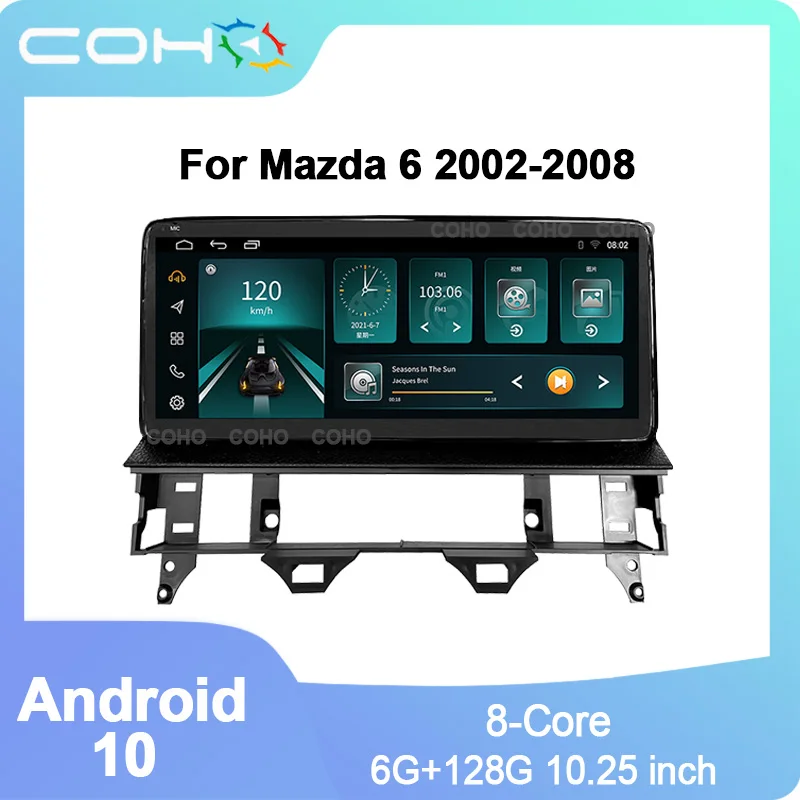 10,25 'дюймовый COHO для Mazda 6 2002-2008 Android 10 Octa Core 6 + 128G Автомобильный мультимедийный плеер стерео радио Вентилятор охлаждения