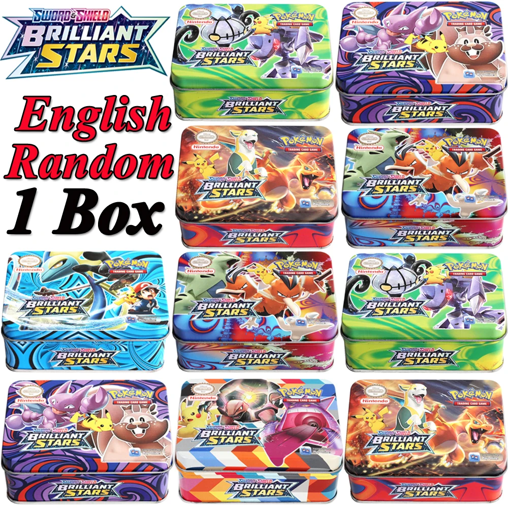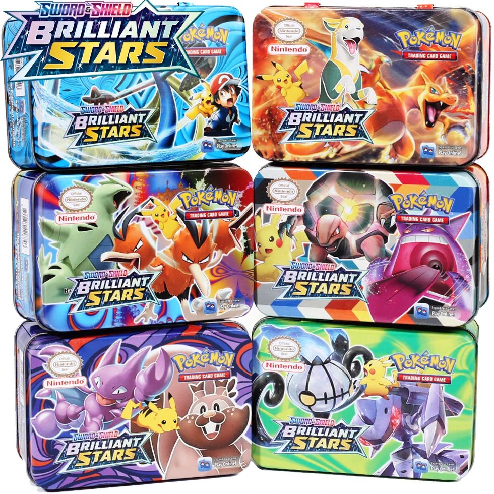 42 шт., карточки с покемонами, железная коробка, блестящие звезды, ...