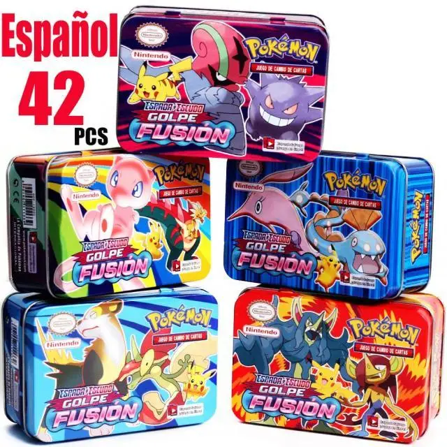 42 штукинабор, карты покемона, железная коробка, блестящие боевые игры, хобби, коллекционные предметы, коллекционная игра для детей