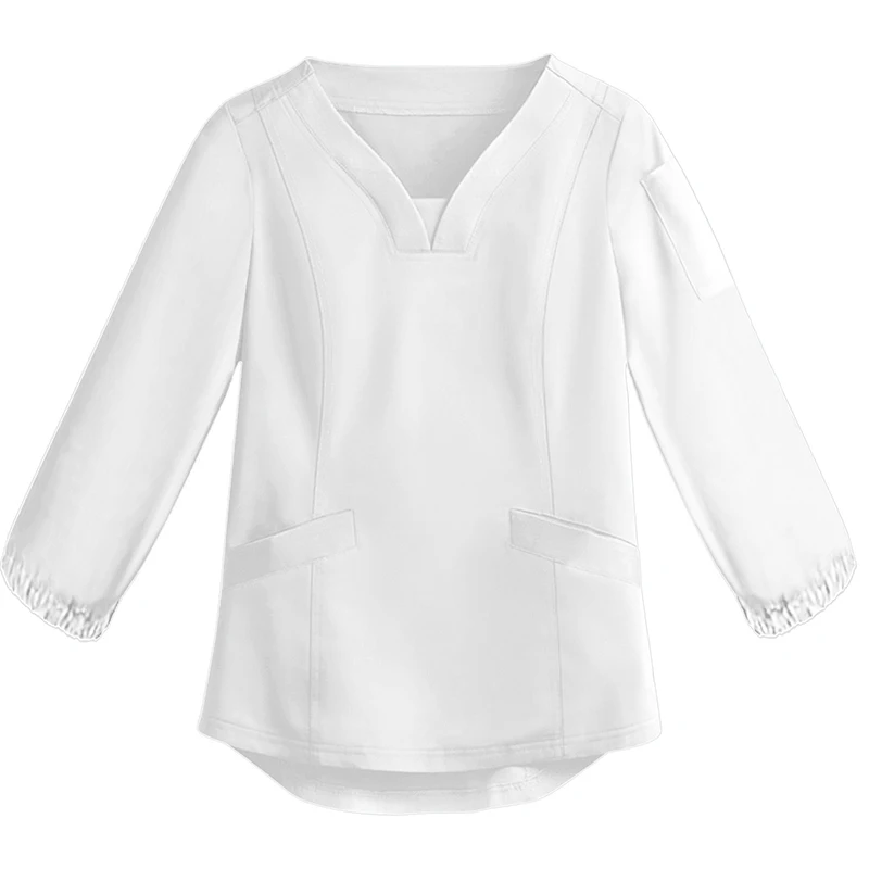 Описание:Машинная стирка, машинная сушка низкаяТоп с v-образным вырезом в стиле унисекс, передний нагрудный карман со слотом-карандашом и боковыми отверстиями.