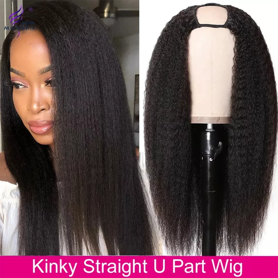 Современные бразильские волосы Yaki, парик с U-образной частью 28, 30 дюймов, курчавые прямые человеческие волосы, U-образные парики для черных женщин, Remy 150%, 180%