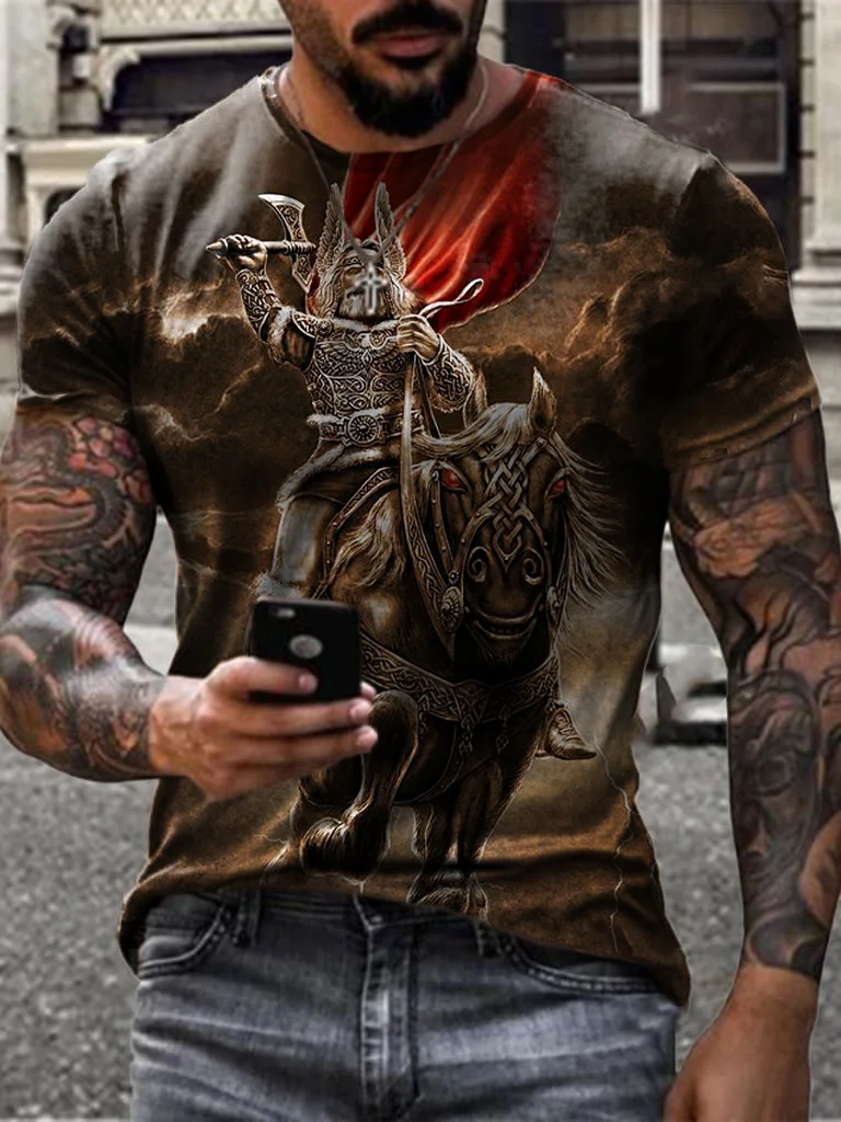 Мужская футболка с коротким рукавом, круглым вырезом и 3D-принтом