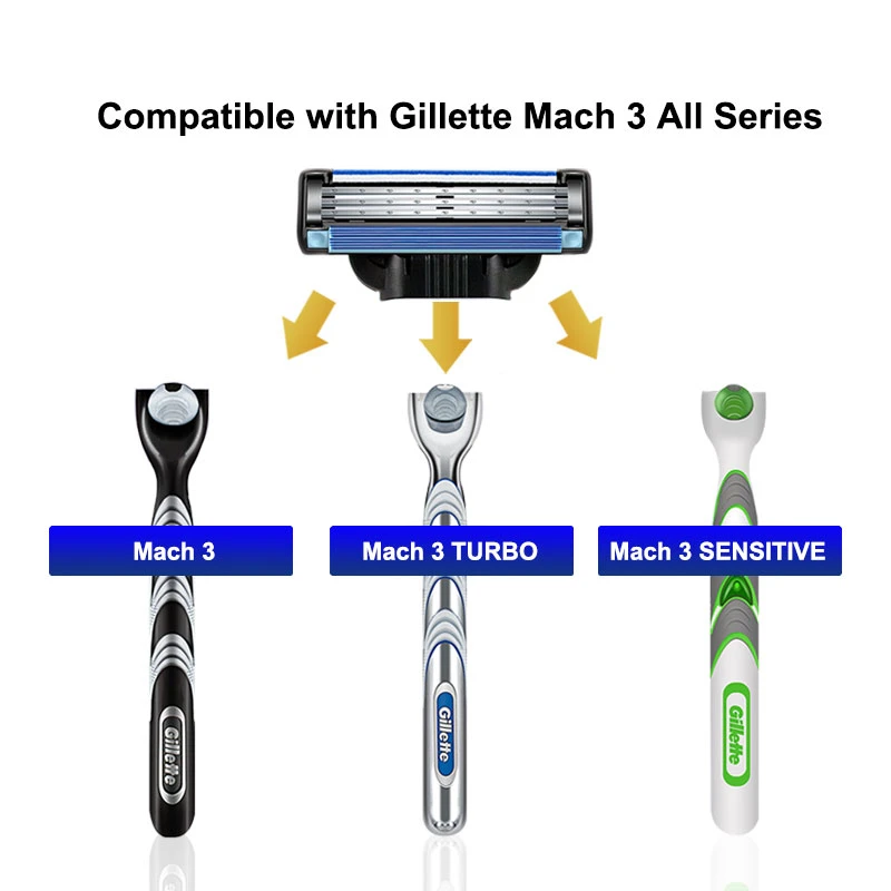 Сменная накаляемая 3 слойные лезвия для бритвы также совместим с Gillette Mach3 все серии ручка (в том числе после бритья Gillette Mach3,Gillette Mach3 Turboo,Gillette Mach3 чувствителен.)