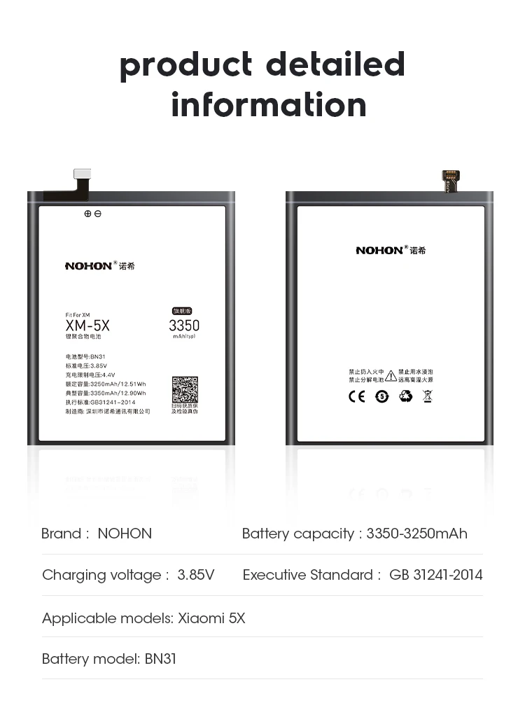 Аккумулятор NOHON литиевый для Xiaomi Mi 5, 5X, 6, 6X, 8 Lite, 9 SE, 9T Pro, 10 Pocophone F1, Mix 2, 2S, 3, BN31, BM22, BM4E, BM3L, BM3E