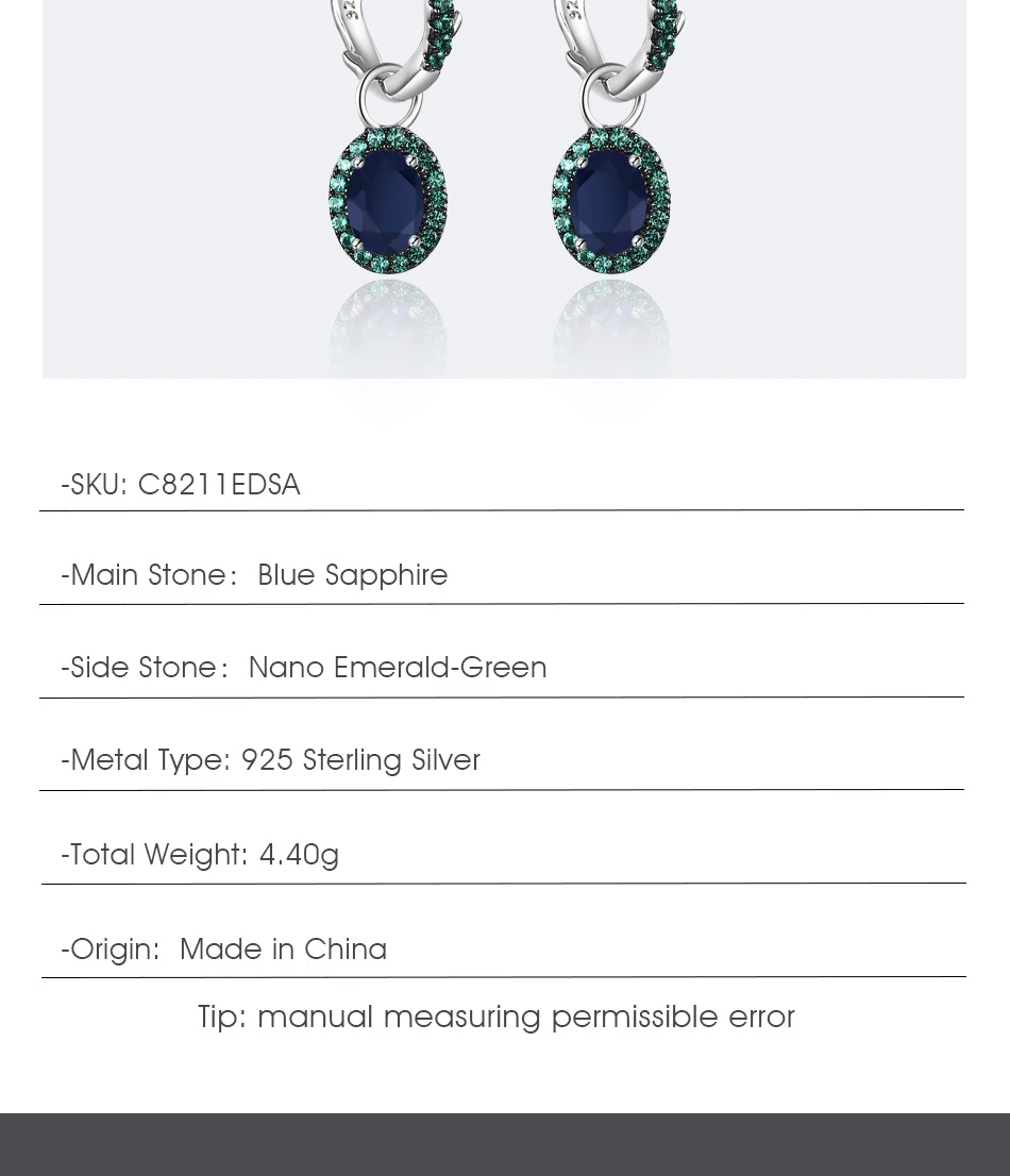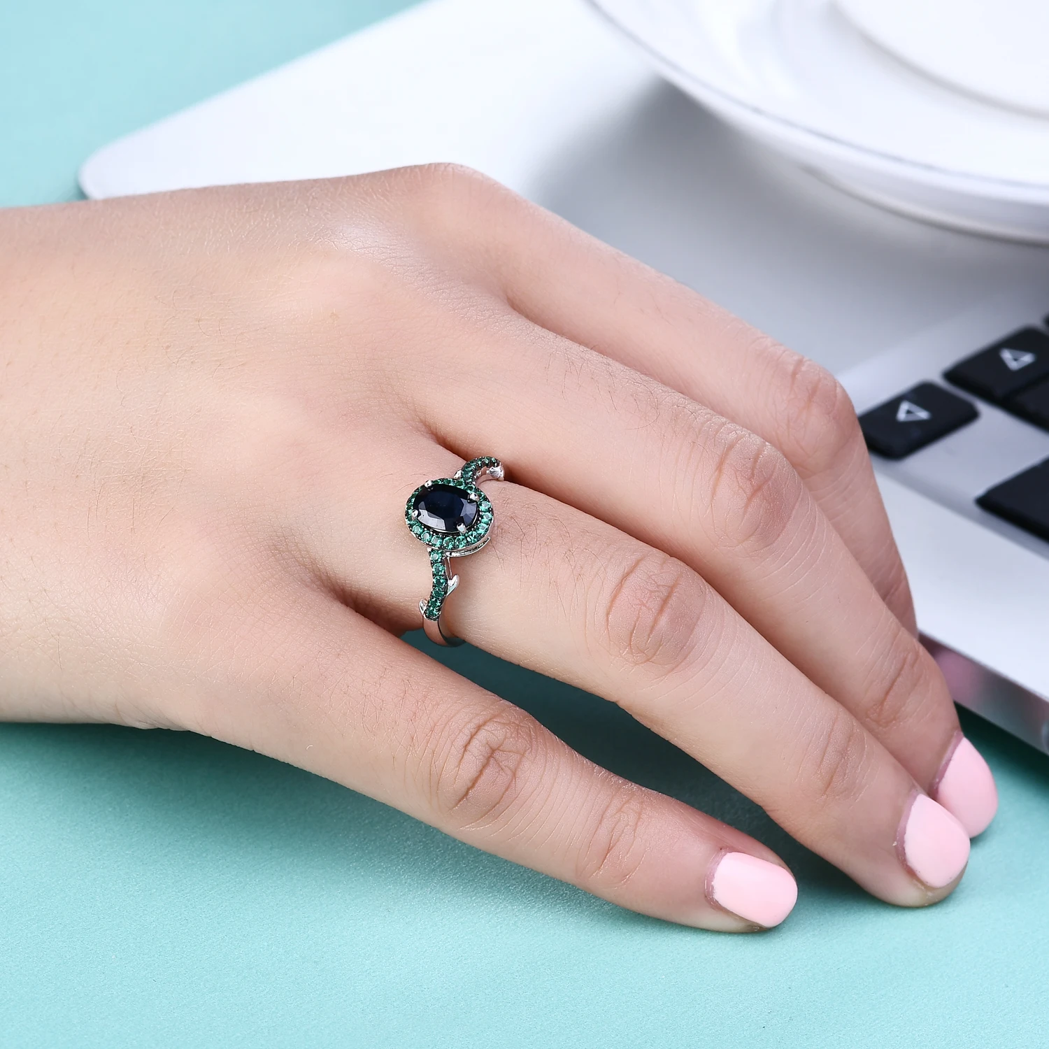 Женский комплект ювелирных украшений GEM'S BEAUTY, регулируемое кольцо с диффузионным сапфиром, серьги-кольца с эффектом