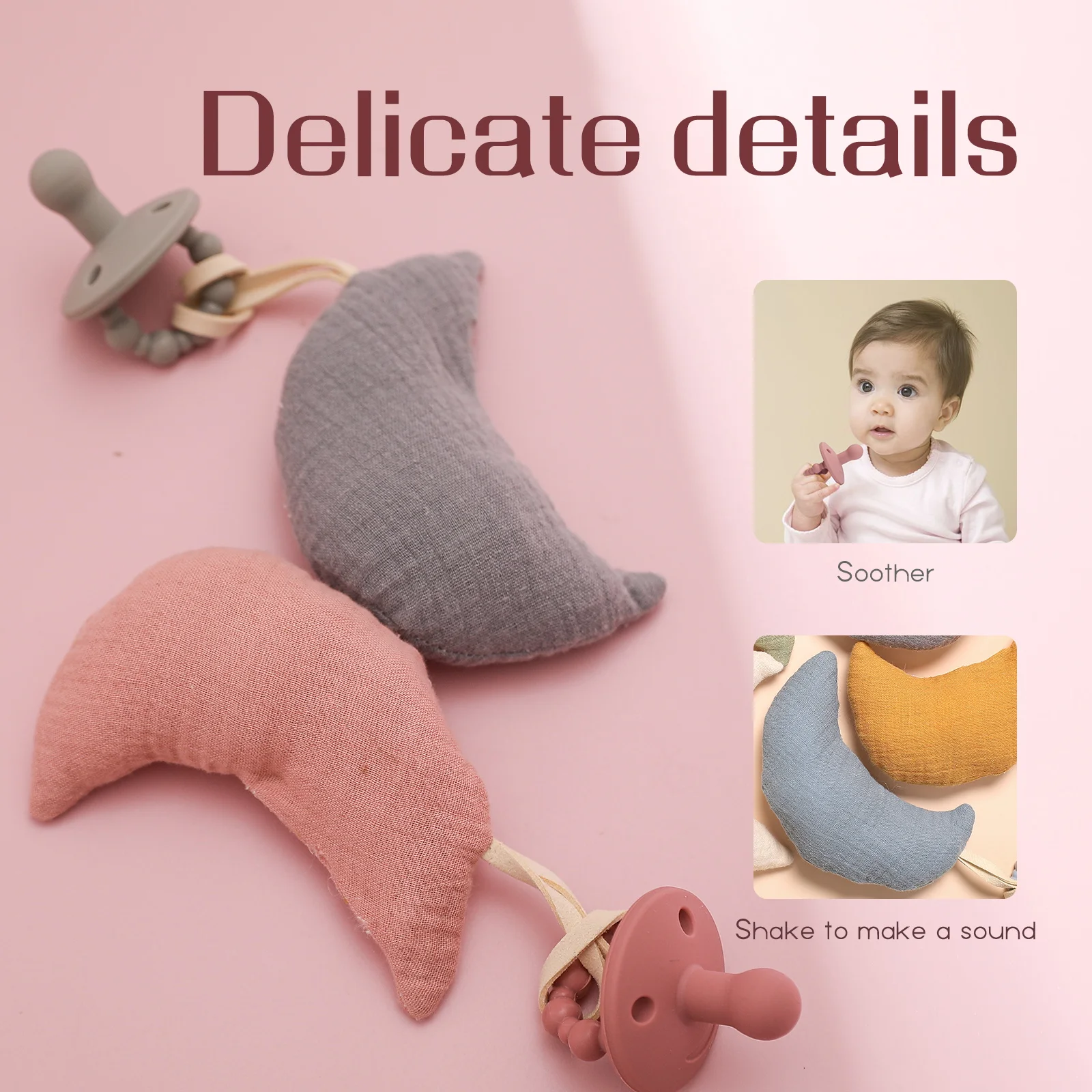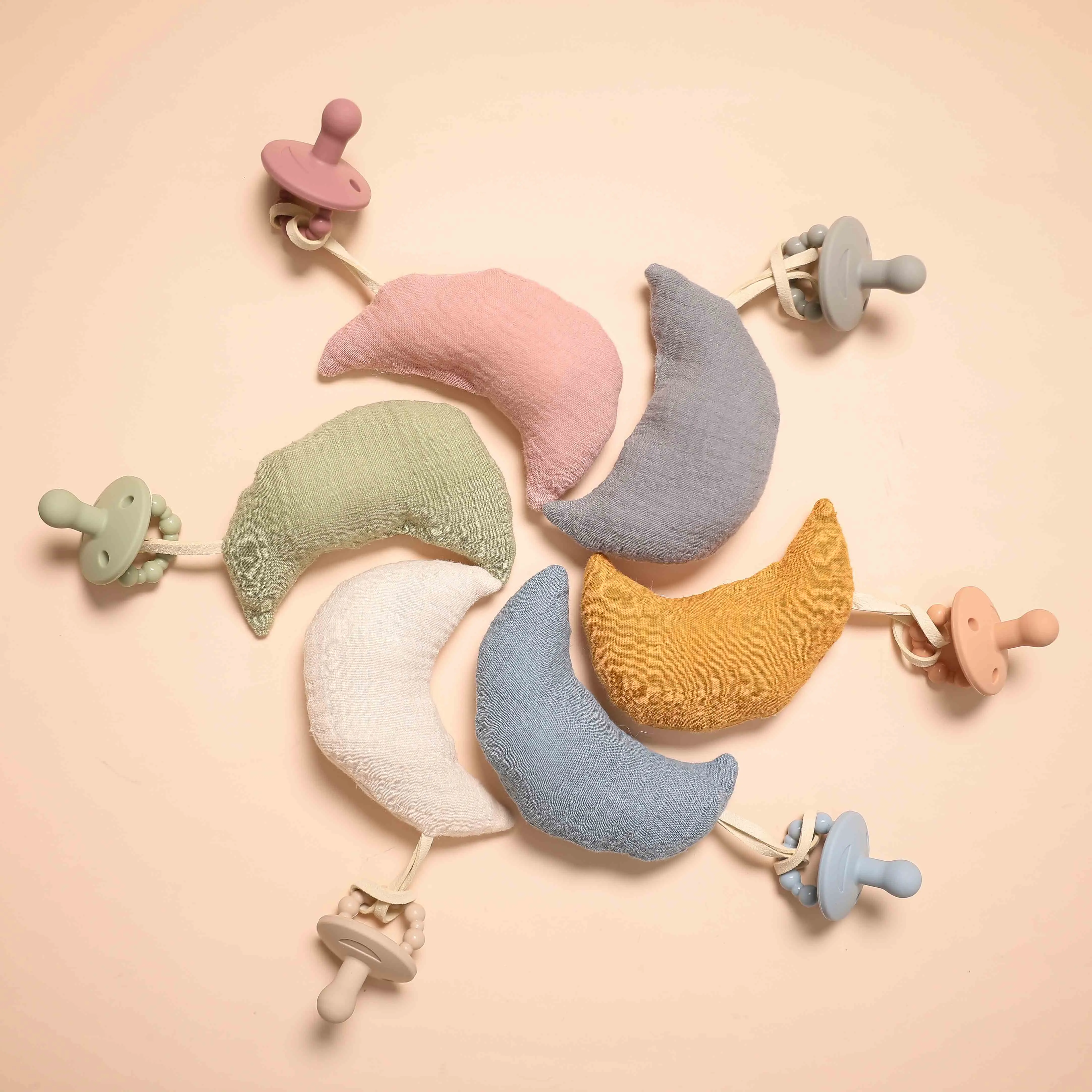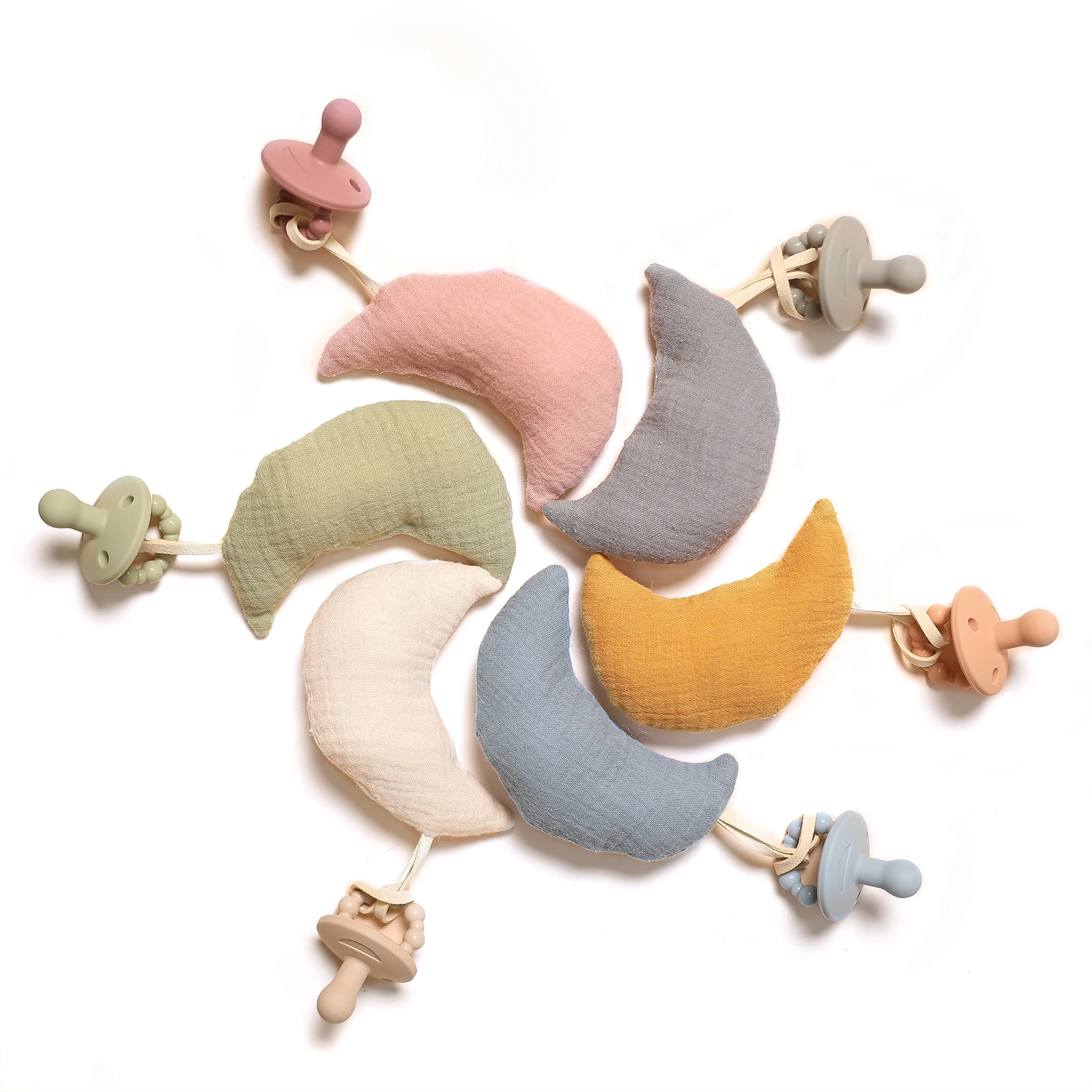 1 шт., новинка, мягкие хлопковые силиконовые соски с Луной, зажимы, экологичные соски-пустышки, держатель, клипсы, силиконовая цепочка для прорезывания зубов, игрушки, подарки для детей