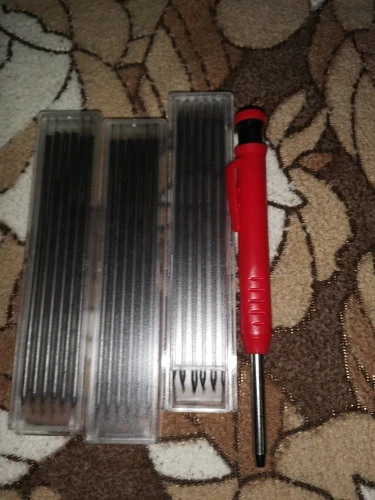 На запасных грифелях красного цвета были отколоты кончики самую малость, заодно проверил точилку. Карандаш удобный, цена хорошая.