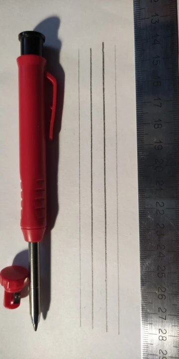 Пришел за месяц. брал за 299р, включая доставку вместе с 6 стержнями. Из плюсов тактильно и внешне сделан из хорошего пластика. метал отполирован. Т.е при использовании не хуже оригинала. но есть и минусы. 1. нет колпачка. 2. Если полностью удавить стержень, нажатием на кнопку его не выдвинуть. нужно сверху открутить точилку и другим карандашом или чем то тонким. линия четкая, примерно как от мягкого или даже твердомяхкого карандаша. на металле то же чертит нормально, стирается при этом то же быстро. с учётом того что такие карандаши от именитых брендов стоят в три или четыре раза дороже, то указанные недостатки не критичны. рекомендую к покупке.