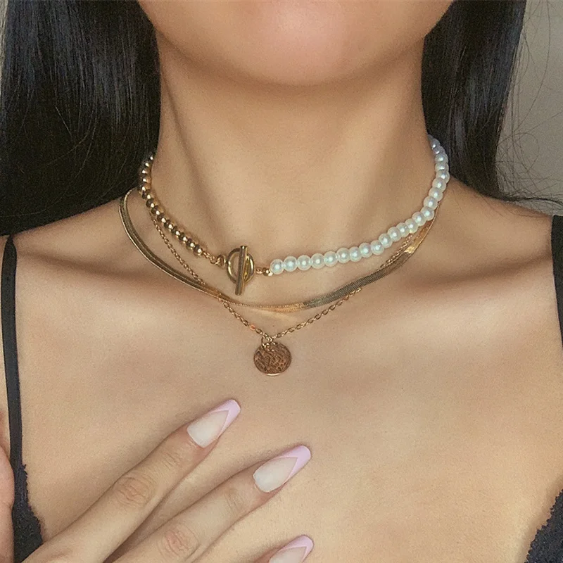 Женское многослойное ожерелье в стиле панк, золотистое винтажное ож...
