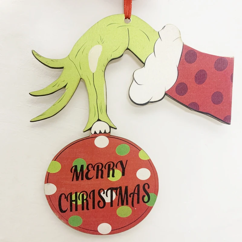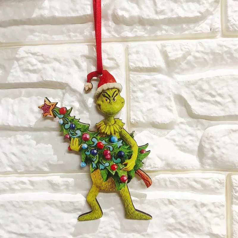 Рождественские украшения для елки Grinch, рождественские украшения, креативное украшение, деревянные и полимерные аксессуары, рождественская подвеска 2022