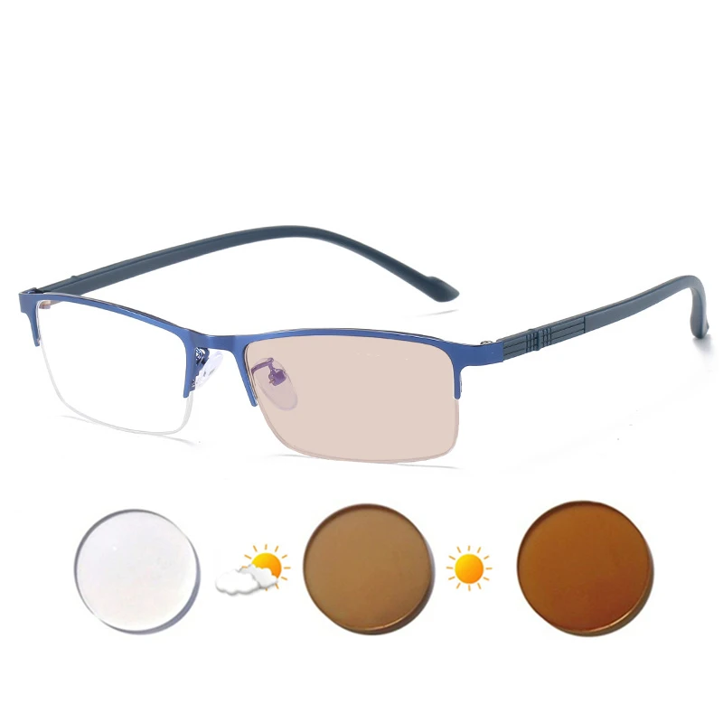 О фотохромные линзы, они будут прозрачными и бесцветными в помещении или в темных местах, но они изменят цвет на открытом воздухе или на солнце, чтобы защитить ваши глаза от сильного светильник.