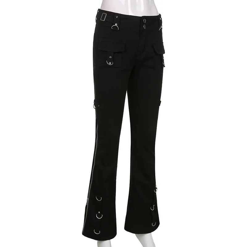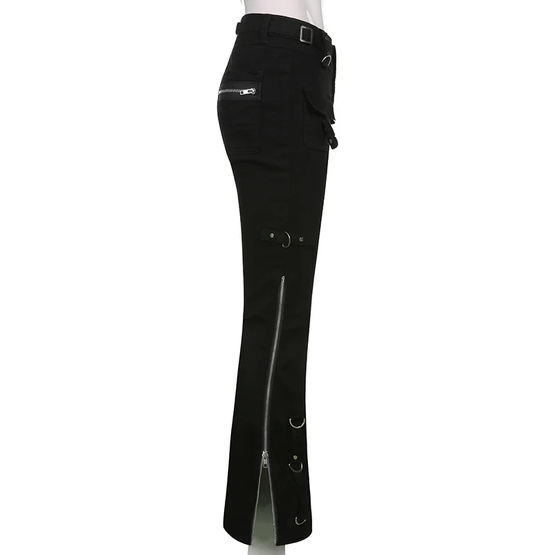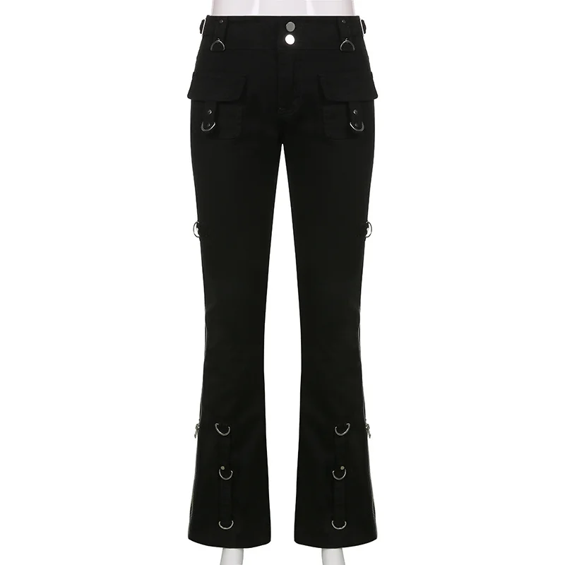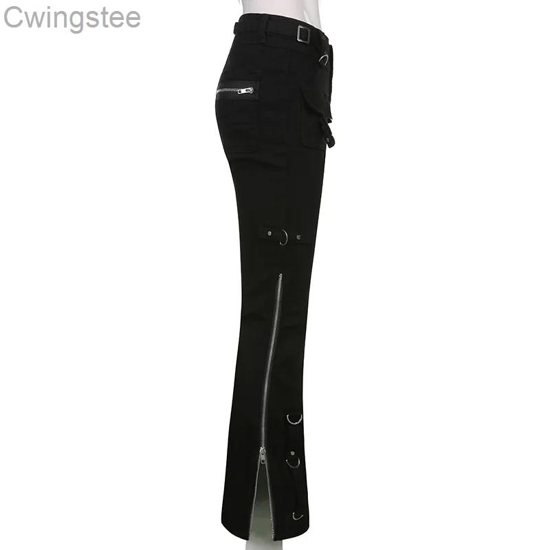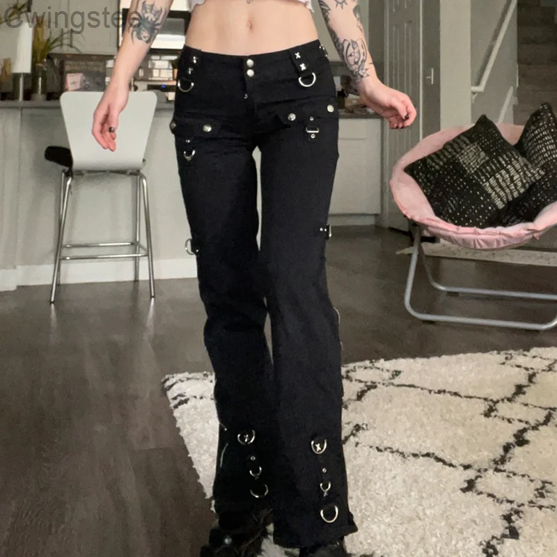 Джинсы женские с заниженной талией, готические брюки-карго из денима в стиле Харадзюку, на молнии, в стиле гранж, сказочные штаны в стиле темной Академии