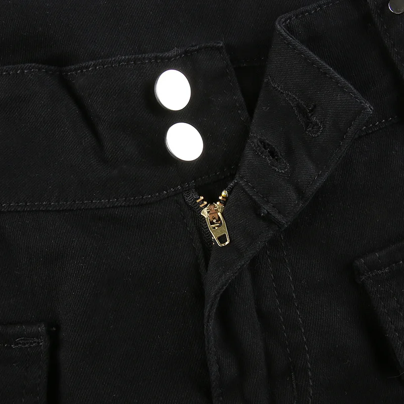 Женские прямые джинсы на молнии, с заклепками, в готическом стиле