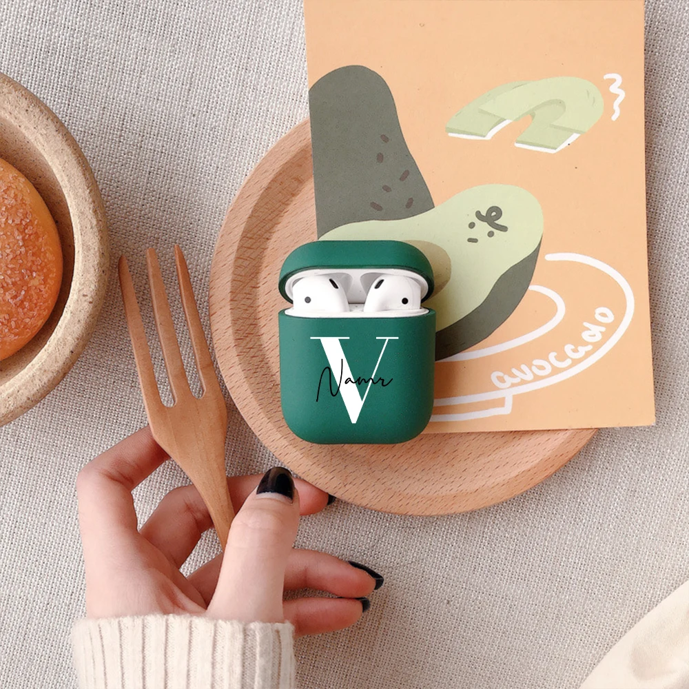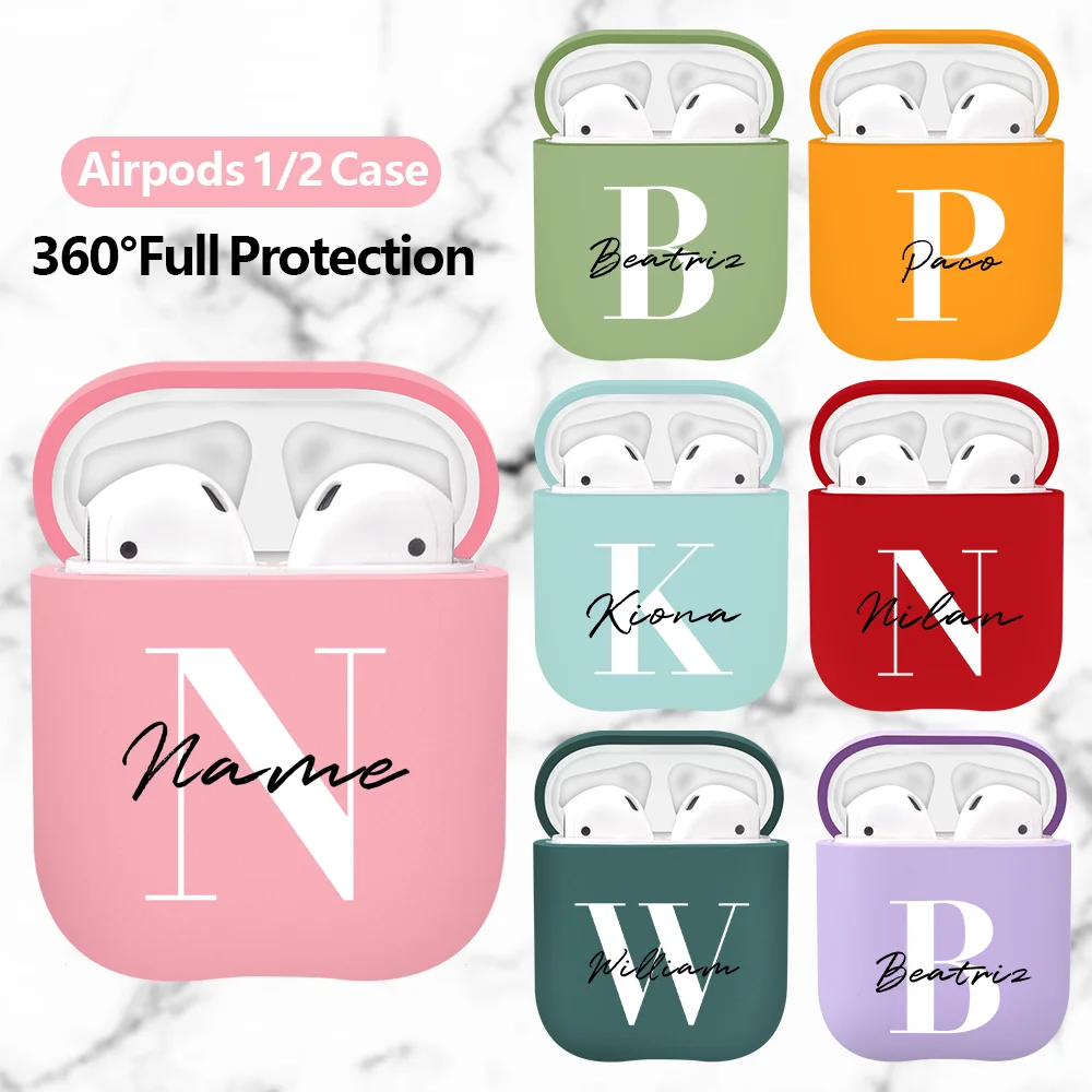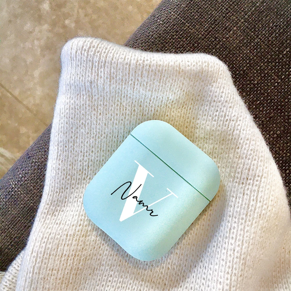 Матовый чехол с инициалами имени на заказ для Airpods 1, 2, 3, чехол, подарок для мальчика и девочки, персонализированный симпатичный чехол сделай сам с Bluetooth-наушниками в твердом переплете