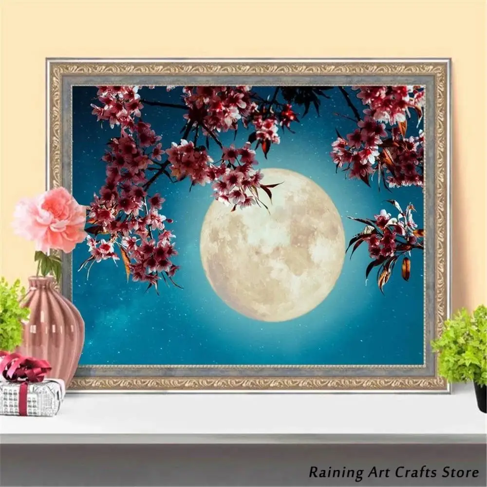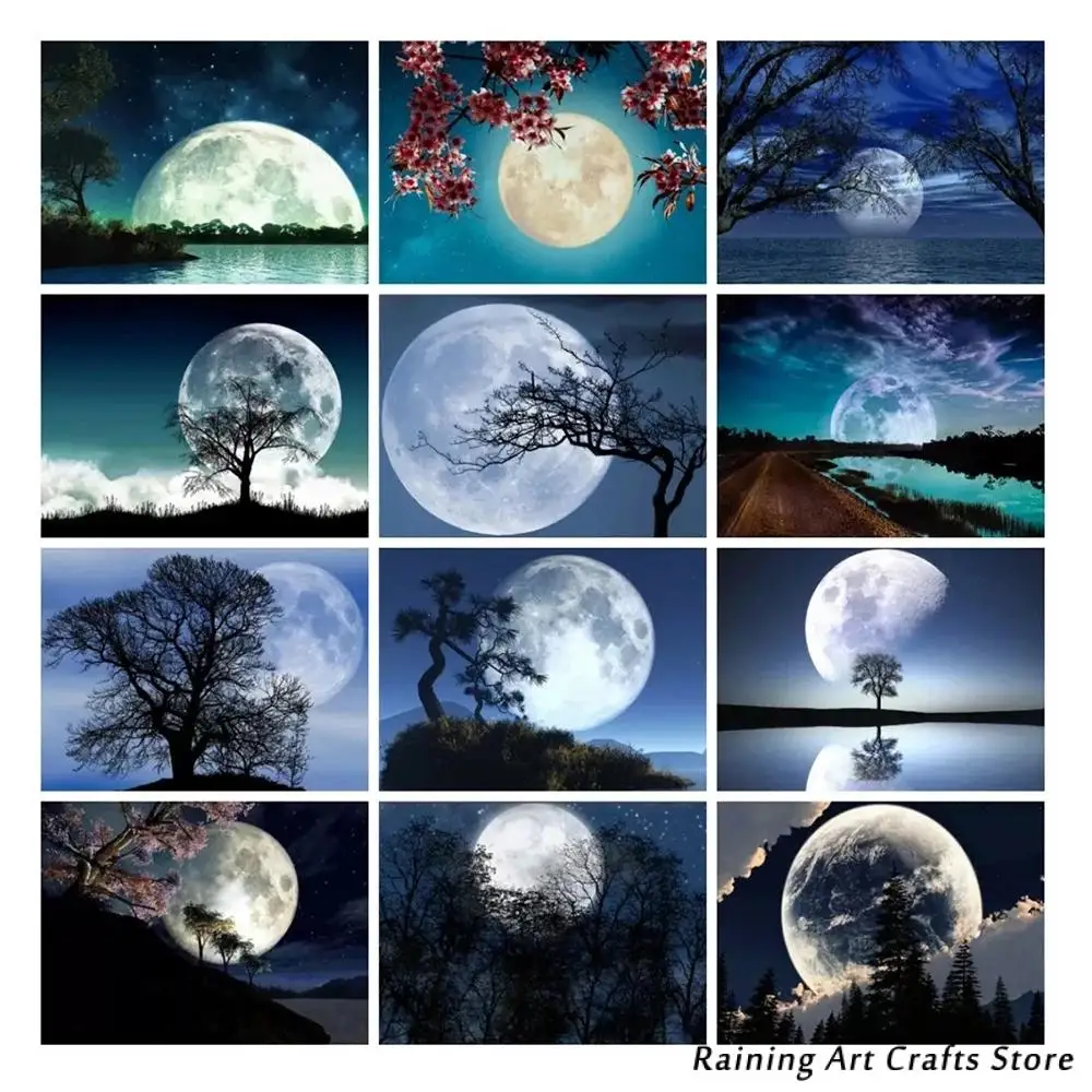 Алмазная 5D картина сделай сам, вышивка Ночной вид Луны, Набор для вышивки крестиком, мозаика, Декор для дома