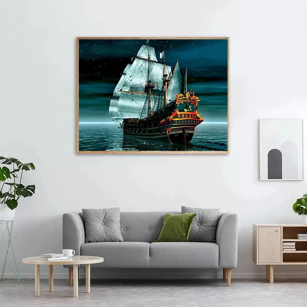5D алмазная живопись сделай сам, корабль, парусник, морской пейзаж,...