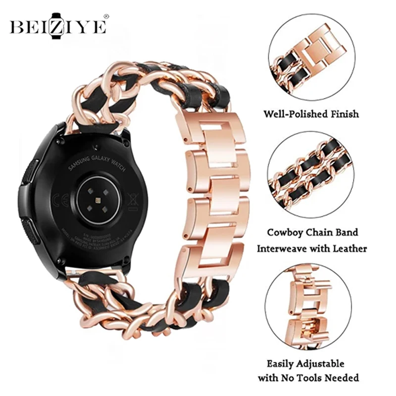 Кожаный браслет для Samsung Galaxy Watch 4 44 мм 40 мм, ремешок для наручных часов Samsung Galaxy Watch 4 Classic 42 мм 46 мм, звеньевой браслет с цепью