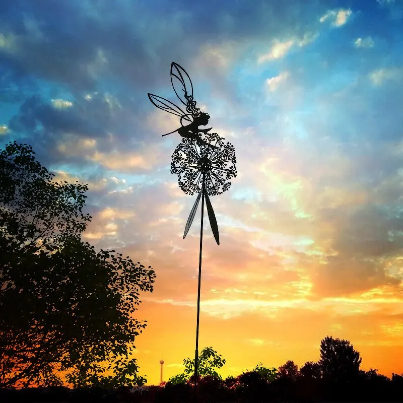Фея одуванчика; Pixies; Цветок; Фея; Садовое украшение; Статуя; Лужайка; Ландшафт; Скульптура; Фигурка; Наружный сад; Двор; Художественный Декор