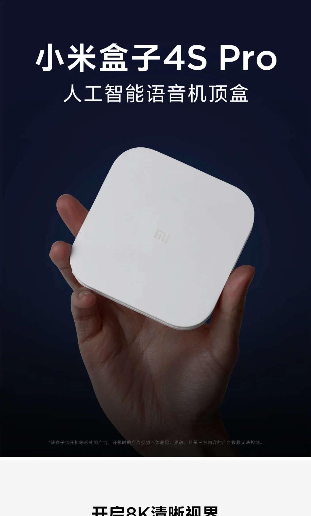MI коробка 4S Pro 1,9 ГГц процессор Amlogic Quad-core 2 Гб оперативной памяти, 16 Гб встроенной памяти, 5G Wi-Fi bluetooth 4,2 android 9,0 8K ТВ-Приставка Smart ТВ коробка п mi ng Media Player китайская версия