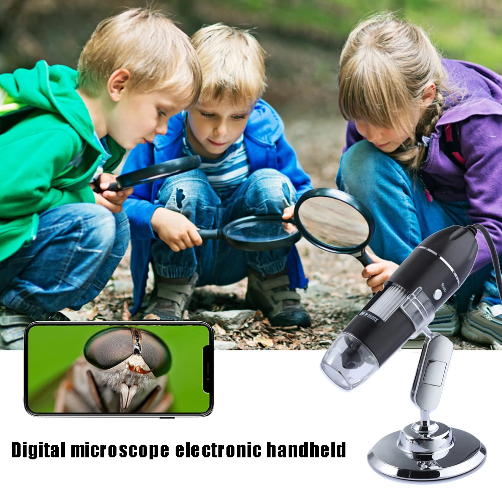 Высококачественный Карманный микроскоп: Высококачественная противоскользящая ручка, удобная и долговечная. Этот портативный микроскоп является идеальной игрушкой для детей, чтобы исследовать микро мир, а также подходит для людей, которые любят наблюдать за насекомыми, кожей, печатной платой и многими интересными предметами.