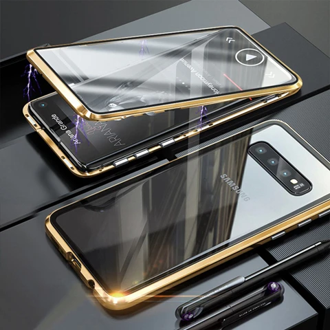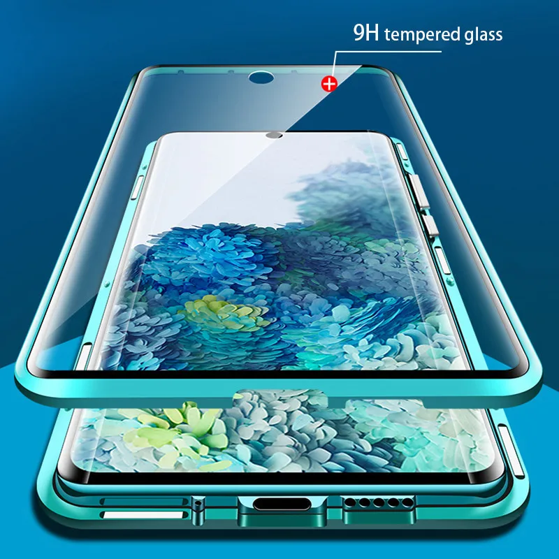 Двухсторонний стеклянный магнитный металлический чехол для Samsung Galaxy S20 FE S10 S9 S8 S20 Ultra Note 8 9 10 Plus A10 A50 A51 A71, Магнитный чехол