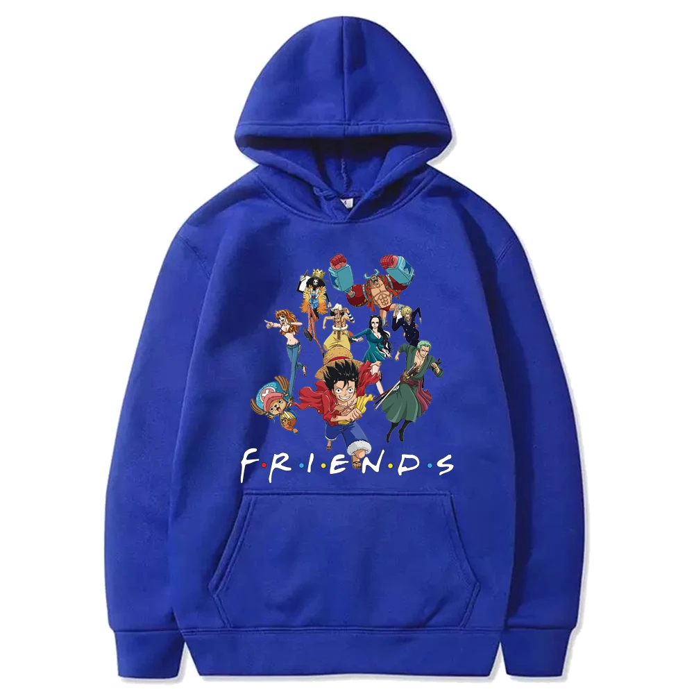 Худи мужское сплошное в стиле аниме, пуловер оверсайз с длинным рукавом, свитшот с принтом друзей, толстовка в стиле Харадзюку, топы