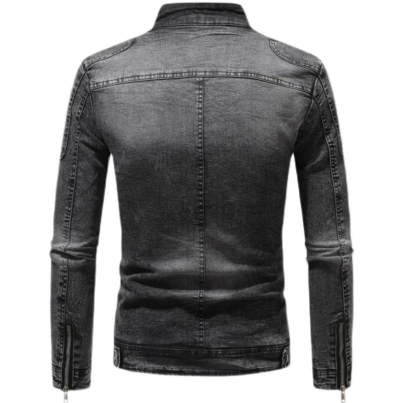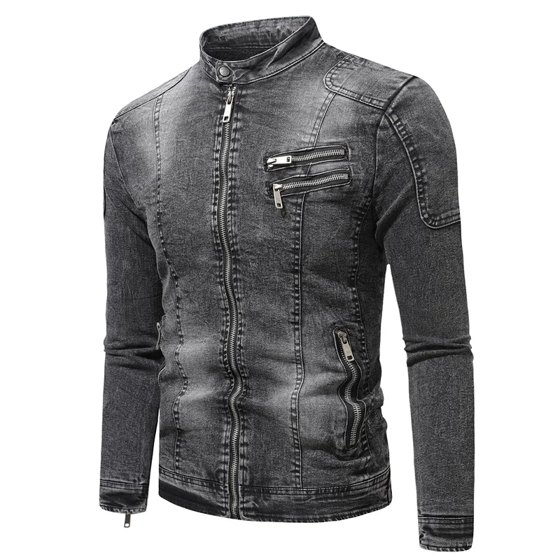 Новая мотоциклетная джинсовая куртка, Мужская Ретро куртка на молнии со стоячим воротником джинсовый пиджак, мужская хлопковая приталенная джинсовая куртка, Байкерская верхняя одежда